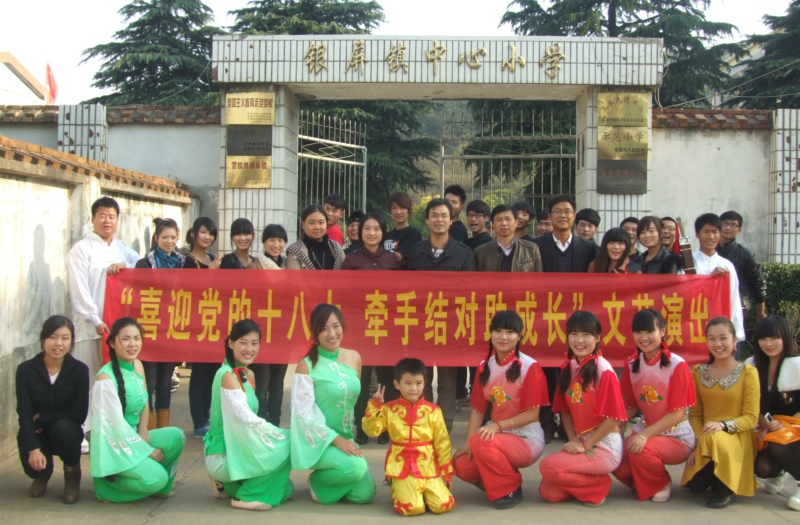 11月7日下午,我院團(tuán)委與巢湖團(tuán)市委聯(lián)合舉辦的“喜迎黨的十八大 牽手結(jié)對(duì)助成長”送文化下鄉(xiāng)活動(dòng)在銀屏中心小學(xué)成功舉辦。院團(tuán)委、巢湖團(tuán)市委、銀屏鎮(zhèn)政府相關(guān)負(fù)責(zé)人與300余名師生共同觀看了文藝演出。