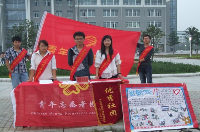 中午放學(xué)后,新生很快便被這里的社團(tuán)宣傳海報(bào)吸引,紛紛駐足觀看,而社團(tuán)的老會(huì)員們也向新生們分發(fā)傳單,向新生介紹自己的社團(tuán),有的社團(tuán)根據(jù)自己的特色,或是播放音樂(lè),或是現(xiàn)場(chǎng)表演。新生們根據(jù)自己的興趣愛(ài)好,尋找自己心儀的社團(tuán)。各社團(tuán)前來(lái)報(bào)名的新生絡(luò)繹不絕,在這些社團(tuán)中,青年志愿者協(xié)會(huì)是最受歡迎的社團(tuán)之一。許多新生都希望在大學(xué)里能夠?yàn)橥瑢W(xué)、為社會(huì)做出自己的貢獻(xiàn),而青協(xié)就為他們提供了這樣的平臺(tái),許多熱心公益的新生在這里聚集,以期實(shí)現(xiàn)他們的夢(mèng)想。