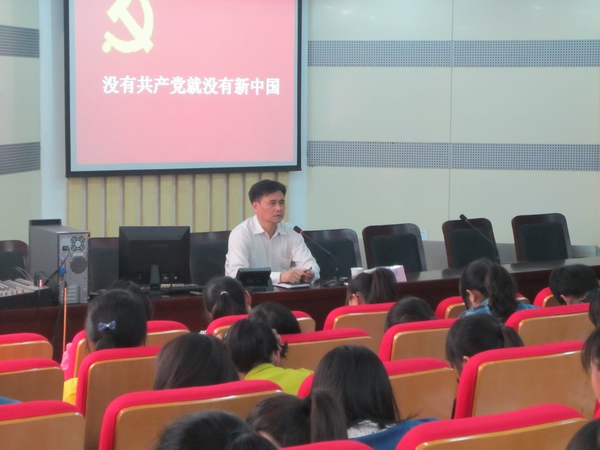 最后,丁書記引用毛澤東同志1957年訪問蘇聯期間對留學生的講話中“世界是你們的,也是我們的,但歸根結底是你們的,你們青年人朝氣蓬勃,正在興旺時期,好像早晨八九點鐘的太陽,希望寄托在你們身上”這一句名言,勉勵同學們從自身做起,刻苦學習,牢記黨的理想信念,牢記黨的歷史經驗,努力繼承我黨的偉大事業,為祖國的發展貢獻力量,為黨旗添彩。丁書記慷慨激昂、激情飽滿的黨課贏得了同學們陣陣的掌聲。