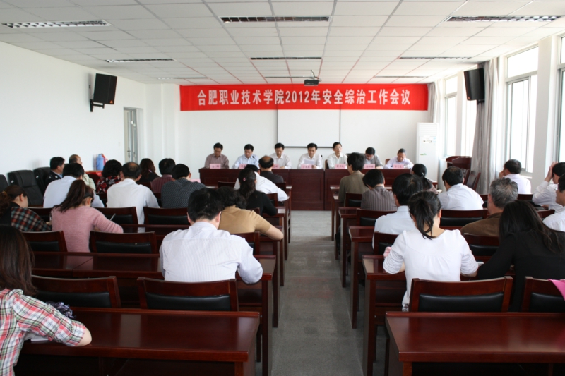 院黨委副書記胡其云在講話中首先傳達了中央以及省市有關安全綜治工作的精神,并提出了我院2012年安全穩定工作的指導思想和總體要求:以科學發展觀為統領,以更名為“合肥職業技術學院”為契機,堅持以人為本、科學發展、安全發展的理念,立足服務我院教育教學改革發展大局,不斷強化政治責任意識,以創先爭優的精神扎實做好我院安全穩定及綜合治理工作,提升我院安全穩定管理水平,為省級示范高職院校的創建創造良好的環境,為黨的十八大勝利召開營造和諧穩定的校園氛圍。
