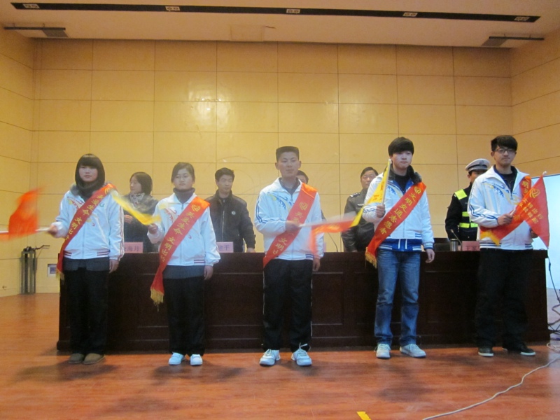 啟動儀式上,交通管理一大隊教導員沐昌全為本次活動致辭。學生處祝處長簡單介紹了“文明交通主題宣傳月”的相關活動并提出了三點要求,即統一思想,提高認識;精心組織,力求實效;文明出行,從我做起。學生代表對與會的近500名學生做了《文明出行 從我做起》的倡議。與會領導為文明交通勸導員披掛了綬帶、授予了交通旗。院黨委副書記胡其云隆重宣布我院“文明交通主題宣傳月”正式啟動。啟動儀式后,交通管理大隊三中隊中隊長王家平作了一場交通安全知識講座,用身邊事例警示學生。與此同時,校園內交通安全警示展板也吸引了廣大師生駐足觀看。青年志愿者們向廣大師生分發了文明交通宣傳冊。