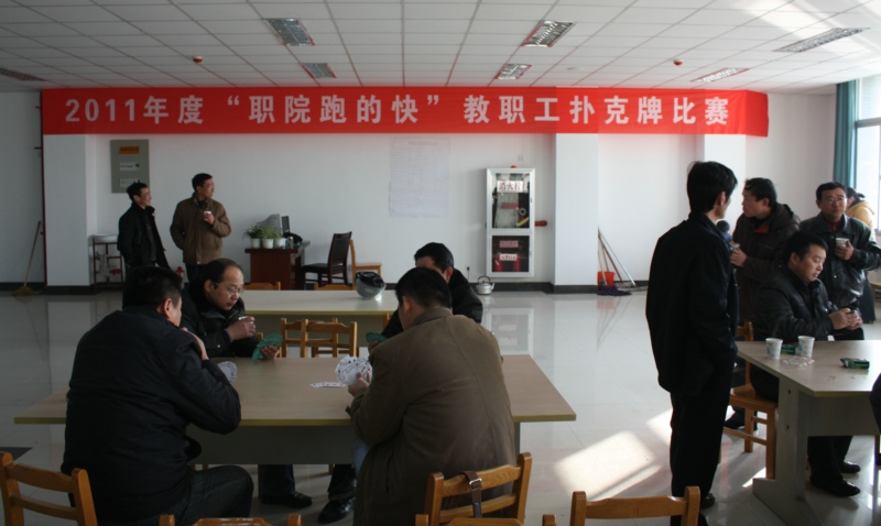 跑快爭上游,協(xié)作建和諧。來自全院各分工會的12支代表隊24組教職工選手,經(jīng)過友誼交流,激烈角逐, “職院跑的快”教職工撲克牌比賽活動,于12月30日晚圓滿結(jié)束。