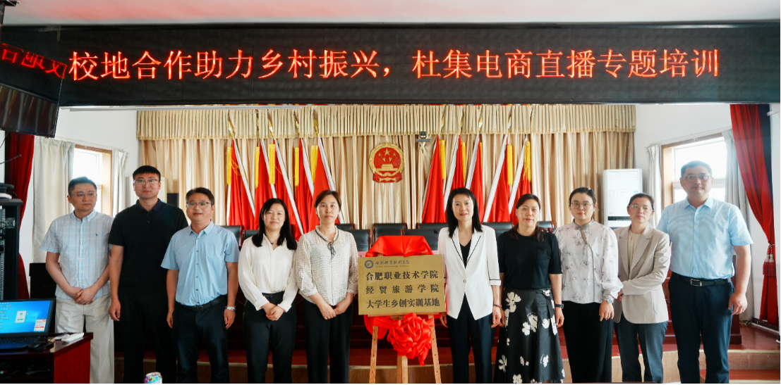 期間,校黨委副書記金飛燕與杜集鎮(zhèn)人大主席張春共同為“合肥職業(yè)技術(shù)學(xué)院經(jīng)貿(mào)旅游學(xué)院大學(xué)生鄉(xiāng)創(chuàng)實(shí)訓(xùn)基地”揭牌。
