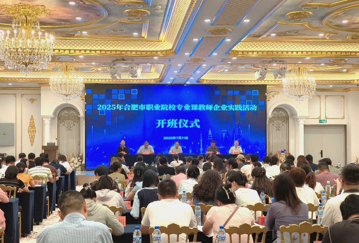 7月11日下午,由合肥市教育局主辦、我校承辦的“2025年合肥市職業(yè)院校專業(yè)課教師企業(yè)實(shí)踐活動”在合肥市新際大酒店舉行開班儀式。合肥市政協(xié)黨組成員、副主席,校黨委書記王杰才;合肥市教育局黨委委員、副局長張藝國;校黨委委員、副校長范家茂以及參加本次實(shí)踐活動的200多名職業(yè)院校專業(yè)課教師和實(shí)踐企業(yè)代表出席開班儀式。儀式由合肥市教育局高職處處長張路平主持。