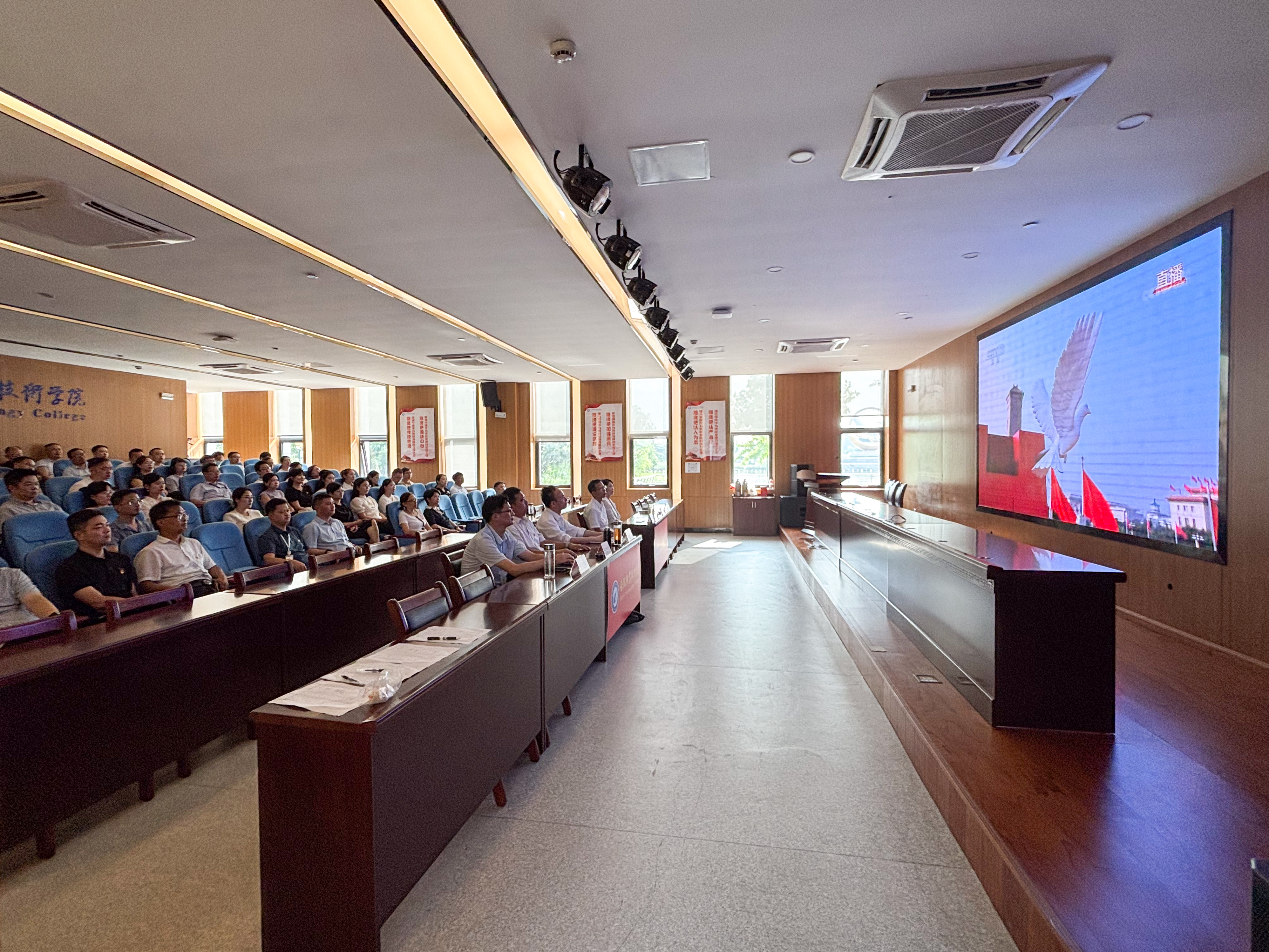 9月3日上午9時,紀念中國人民抗日戰爭暨世界反法西斯戰爭勝利80周年大會在北京天安門廣場隆重舉行。中共中央總書記、國家主席、中央軍委主席習近平發表重要講話并檢閱部隊。全校師生懷著激動和崇敬的心情,通過多種方式認真收聽收看直播,共同上了一堂生動的愛國主義教育和國防教育課。