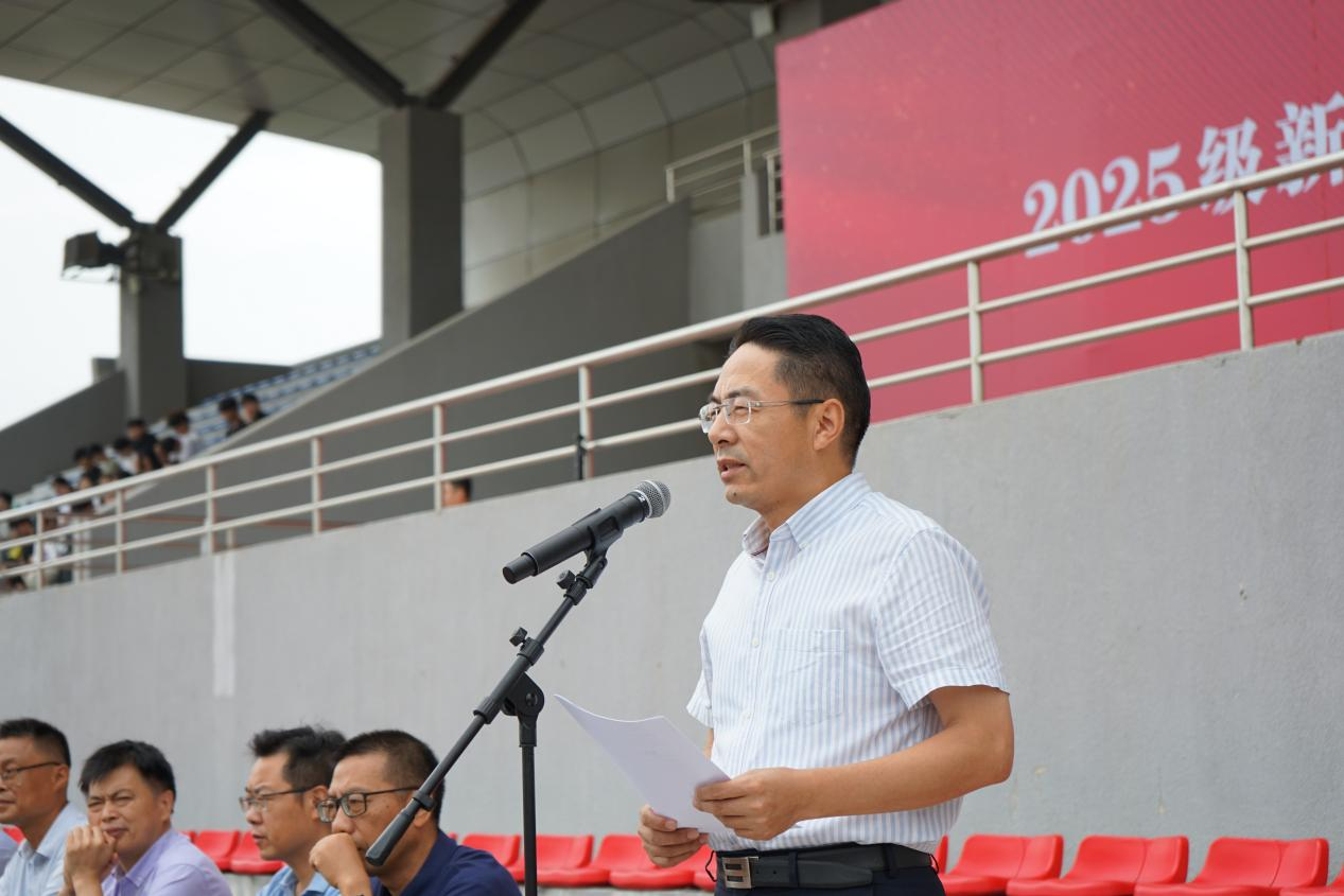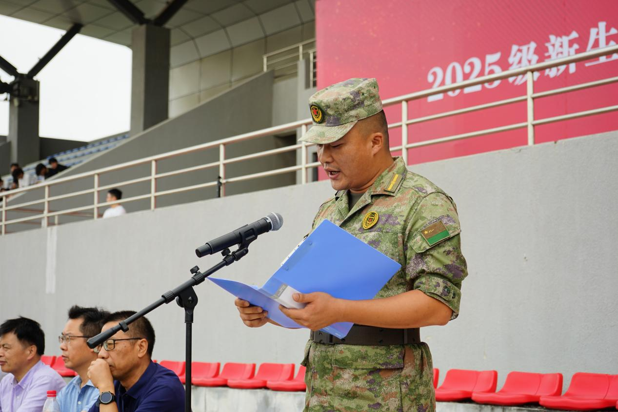 學生處負責人和保衛處負責人分校區宣讀《2025級學生軍訓工作實施方案》。教師代表、軍訓教官代表、學生代表分別作了發言。