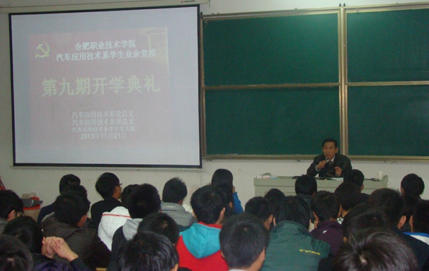 11月21日下午4:00,汽車系在教學樓A樓二樓階梯教室舉行簡樸而莊嚴的第九期學生業余黨校培訓班開學典禮,汽車系黨總支書記汪春榮、汽車系主任程師蘇和91名培訓班學員參加了開學典禮。開學典禮由汽車系黨總支組織委員、學生黨支部書記伍東升主持。