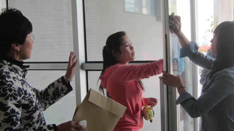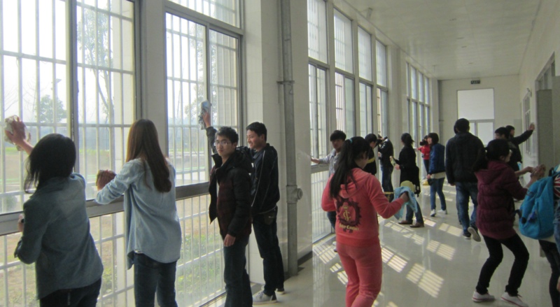 下午2:00,清潔活動正式開始。同學們手持自備的抹布、鏟子等清潔工具,對白色垃圾、雜物、衛生死角等進行認真清理,他們任勞任怨,將該樓公共區域清掃得干干凈凈,為在該樓學習的同學們創造了優美潔凈的環境。