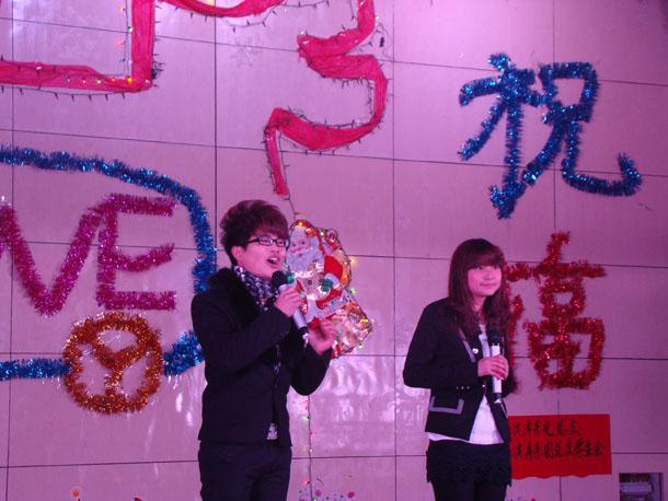 晚會開始前,汽車系主任程師蘇致新年詞,他首先代表汽車系全體教師向同學們致以新年的祝福,而且就汽車系2012年來的工作成就和今后的發展思路向同學們做了簡單介紹,并相信有學院的領導,有全體師生的共同努力,學院和汽車的明天會更好。