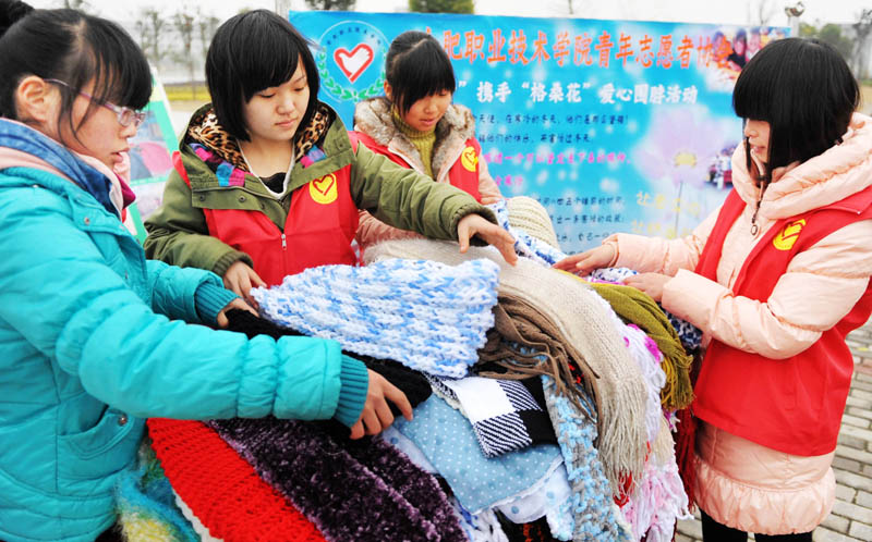 為了給高寒地區的貧困孩子帶去一份溫暖,送去一份關心,在全院范圍內形成樂于助人、無私奉獻的風氣,12月12日,院青年志愿者協會啟動了 “格?;ā獝坌膰薄迸媱潯?br> 青年志愿者們首先開展了為期一周的“格?;ā獝坌膰薄迸媱澋男麄骱蛣訂T工作?!懊總€孩子都是天使,在寒冷的冬天,他們是那么堅強,不該讓酷寒凍結他們的快樂??椧粭l圍脖時間=兩三個下午的休息時間=四五個睡前的時間;所需的最大的成本=你我的愛心=無價;寄出一條圍脖的收獲=學會一門傳統手藝=西部一個孩子的一冬歡樂=自己一份永久難忘的記憶。”誠摯的宣傳語驅趕了冬天的寒冷,撥動了同學們的心弦。