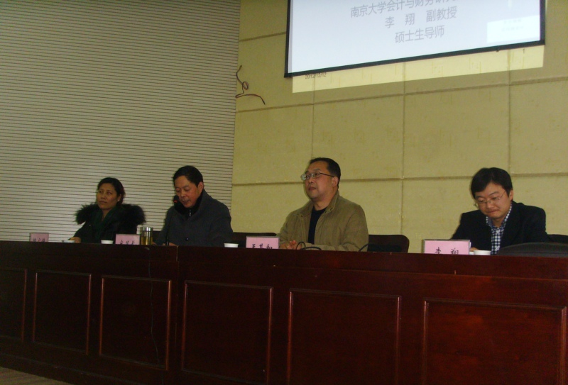 2012年12月12日下午,經合肥市人社局遠程教育學習中心的引薦,南京大學商學院會計學、管理學博士、碩士生導師、南大會計與財務研究院副院長李翔在圖書館二樓報告廳,為經貿系會計、管理相關老師、部分2011級會計專業在校學生共200余人,作了題為“資本市場與會計作用”的專題學術講座。南京大學網絡教育學院王其和副院長、教學部陳廣俠主任等也參聽了學術報告。