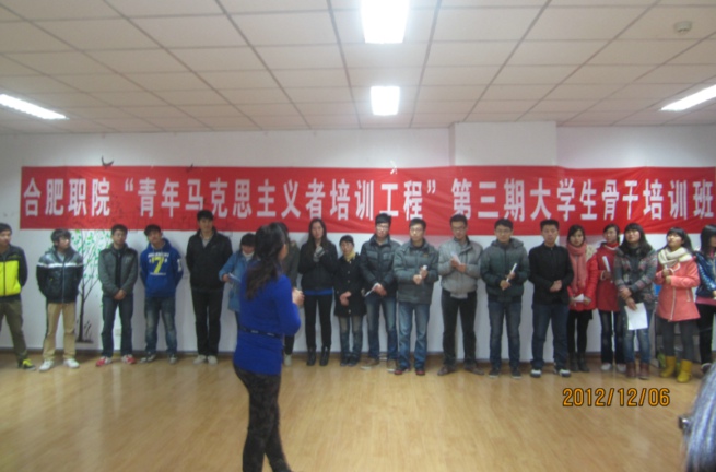 12月5日至7日晚上,院團(tuán)委特邀了3名專業(yè)心理咨詢師對(duì)我院“青年馬克思主義者培養(yǎng)工程”第三期大學(xué)生骨干培訓(xùn)班的學(xué)員們開(kāi)展心理素質(zhì)拓展訓(xùn)練。