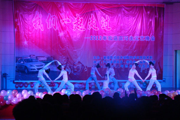 4月25日晚,由汽車系主辦,汽車系團總支、學生會、追夢音樂社承辦的2012年“我們一起走過”歡送實習生文藝晚會在院大學生活動中心隆重舉行。汽車系主要負責同志和近500名10級畢業實習班級學生觀看了整臺晚會,來校招聘的南京萬通汽修學校的領導老師也應邀觀看了晚會。