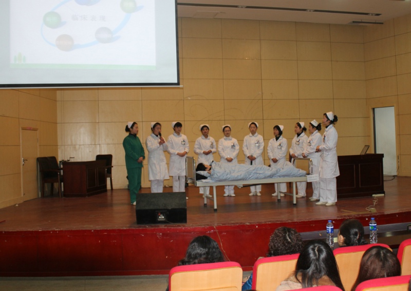 2月27日18時(shí),醫(yī)學(xué)分院480名師生在大學(xué)生活動(dòng)中心觀摩市一院組織的案例教學(xué)課——《股骨頸骨折圍手術(shù)期護(hù)理》。教學(xué)模擬教學(xué)查房的真實(shí)情境,教學(xué)過(guò)程包括病例相關(guān)知識(shí)回顧、病歷介紹、手術(shù)護(hù)理和術(shù)后護(hù)理,有知識(shí)問(wèn)答與小結(jié),有技能操作演示,有知識(shí)的拓展和延伸,還有教學(xué)團(tuán)隊(duì)成員之間的分工協(xié)作,既展示了綜合護(hù)理以病人為中心的全新的服務(wù)模式,也體現(xiàn)了現(xiàn)代整體護(hù)理的新理念。