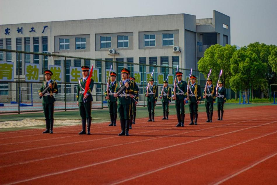 陽光初照,國旗護衛(wèi)隊的旗手們邁著堅挺的步伐向升旗臺走來,隨著激昂的國歌奏響,五星紅旗冉冉升起,全體師生莊嚴肅立,齊唱國歌,注視著國旗的升起。