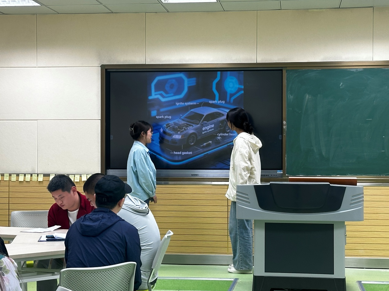 本次活動分三個階段:學生能力展示、教師互動交流、教學探新研討。在學生展示環節,首先是職場英語場景展示。場景英文對話展示圍繞導游接待、酒店入住、汽車制造與售后溝通等職場真實場景展開;英語話劇表演“怪獸風波”掀起了本場學生展示環節的高潮,呈現了大學英語組同學扎實的語言綜合應用能力。學生們流利的術語表達、得體的跨文化應對和生動的職場模擬表演,展現了“語言能力+職業素養”的復合型學習成果。從“講臺”走向“舞臺”,他們的表現有力印證了英語教學改革的成效——學生語言應用能力顯著提升。