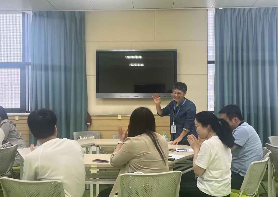 在教師互動交流環節,與會教師共同體驗了“戲劇教學法在英語課堂的破冰實踐”。通過故事接龍、即興表演、跨文化沖突案例分析等互動形式,教師們以學生身份體驗了戲劇教學法,并深入探討如何利用戲劇化教學激發學生興趣、提升課堂學生的參與度。20分鐘的沉浸式示范讓現場氣氛活躍,見證了課堂從“沉默的獨角戲”變成“全員參與的能量場”的過程,為創新英語教學法提供了新思路。