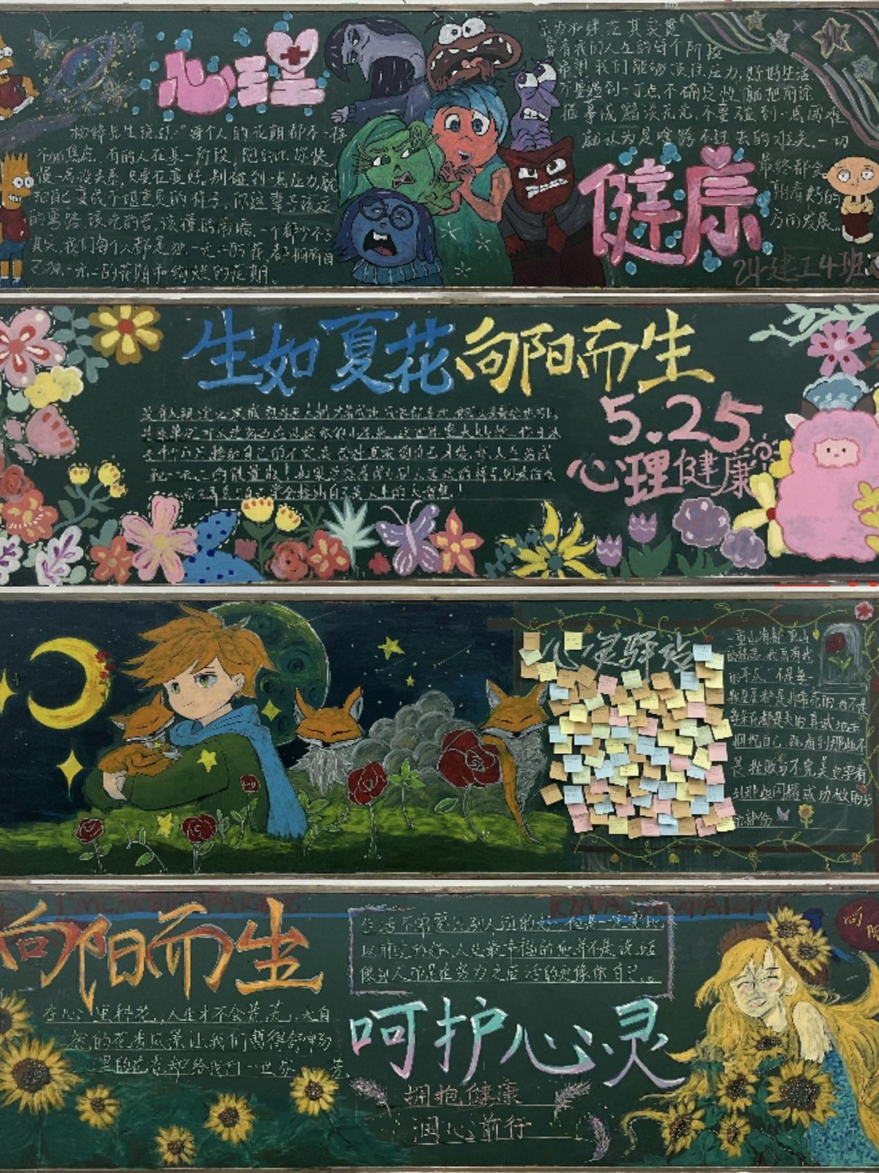心理健康主題黑板報評選。24級各班級積極參與,精心設計制作了以心理健康為主題的黑板報,內容涵蓋認識自我、情緒管理、人際交往、應對挫折、生命教育等多個方面,風格各異,創意十足。最終24環藝班、24建裝2班、24建工1班等6個班級分別獲得一、二、三等獎。