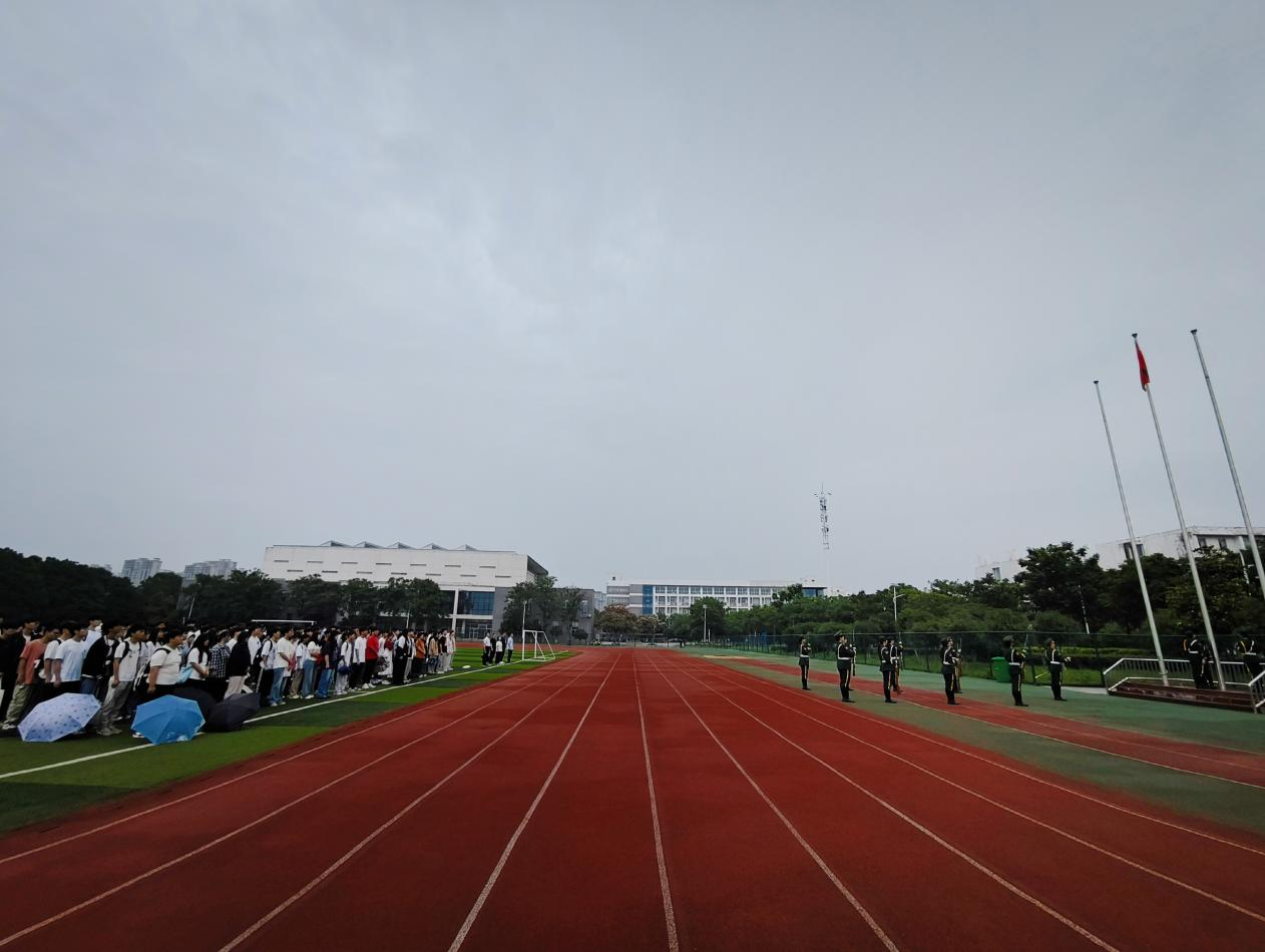 8點(diǎn)整,升旗儀式正式開始。國(guó)旗護(hù)衛(wèi)隊(duì)的隊(duì)員們邁著整齊而堅(jiān)定的步伐,護(hù)送著鮮艷的五星紅旗走向升旗臺(tái)。在全體師生莊嚴(yán)肅穆的注視下,國(guó)歌奏響,五星紅旗在雨中緩緩升起,迎風(fēng)舒展,仿佛在訴說著對(duì)祖國(guó)的忠誠(chéng)與熱愛。