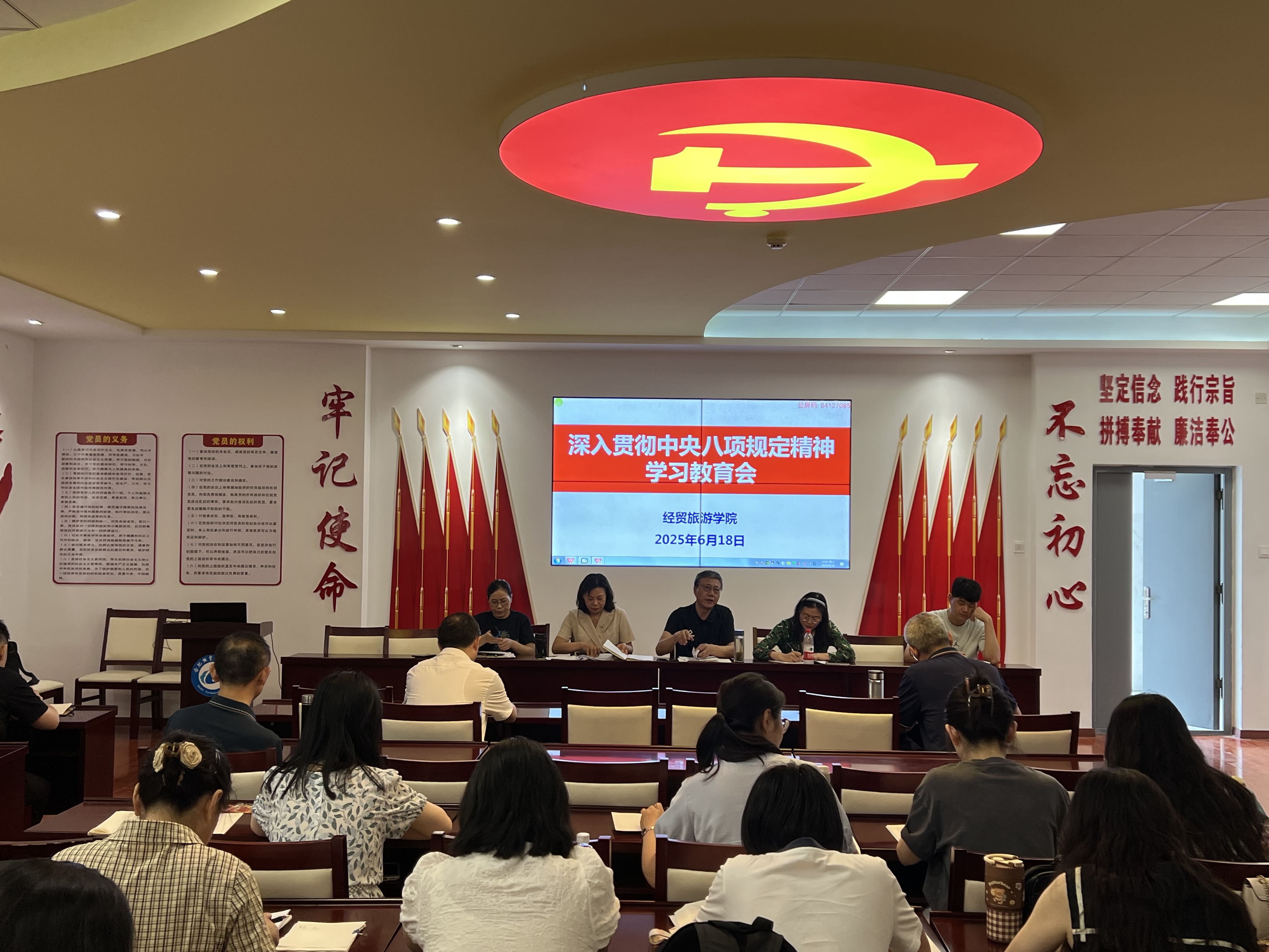 為切實增強全體教職工廉潔自律意識,以更高標準、更嚴要求持續深入貫徹中央八項規定精神學習教育,6月18日,經貿旅游學院在黨性體驗館召開深入貫徹中央八項規定精神學習教育會。該院全體教職工參加會議,會議由該院副院長付曉蘭主持。