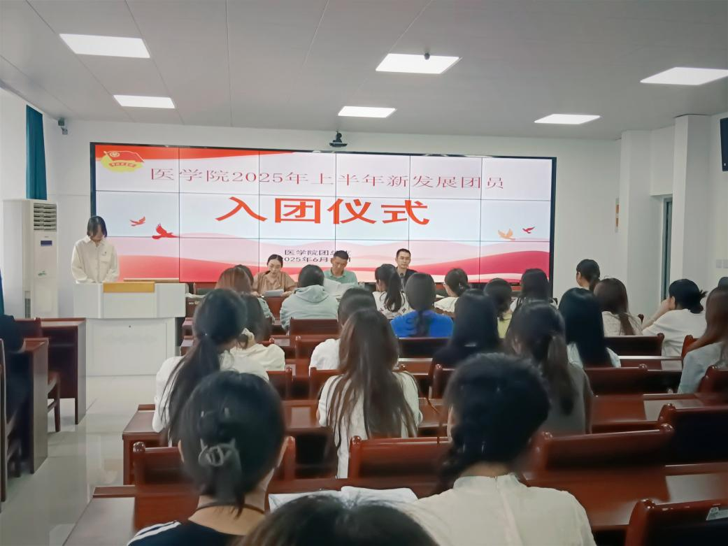 為進一步強化青年思想政治引領,增強共青團組織的凝聚力,激勵新時代青年勇?lián)鷷r代使命,6月18日下午,醫(yī)學院在醫(yī)學樓大會議室舉辦2025年上半年新發(fā)展團員入團儀式。醫(yī)學院黨總支副書記(主持工作)鄒華兵、教師代表以及醫(yī)學院全體新發(fā)展團員共同參加了此次意義非凡的活動,儀式由團總支書記劉惠主持。