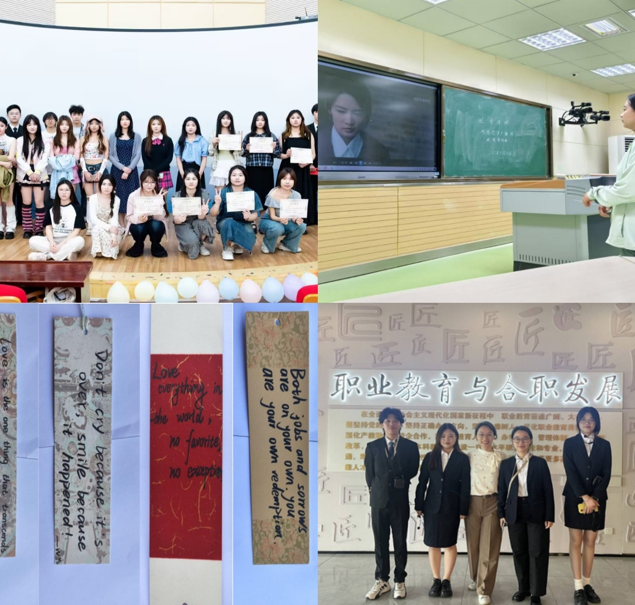 協會相繼推出“聲臨其境,音繪萬象”趣味配音活動,引導學生在聲音藝術中感受語言魅力;舉辦“綻放英語魅力,點燃學習熱情”英語才藝大賽,為學子提供展現語言才華與青春活力的舞臺;開展“英墨書香,悅讀拾萃”跨文化書法活動,巧妙融合英語學習與中華傳統書法藝術,在翰墨飄香中促進跨文化理解;組織經貿旅游學院學生參觀校史觀,引導大學生們體悟愛國精神、勞動精神與工匠精神所蘊含的深邃意蘊。這一系列活動的成功開展,顯著提升了協會的吸引力與凝聚力,營造了濃厚的校園英語學習與文化育人氛圍,是支部黨建與社團發展同頻共振、互促共進的生動寫照。
