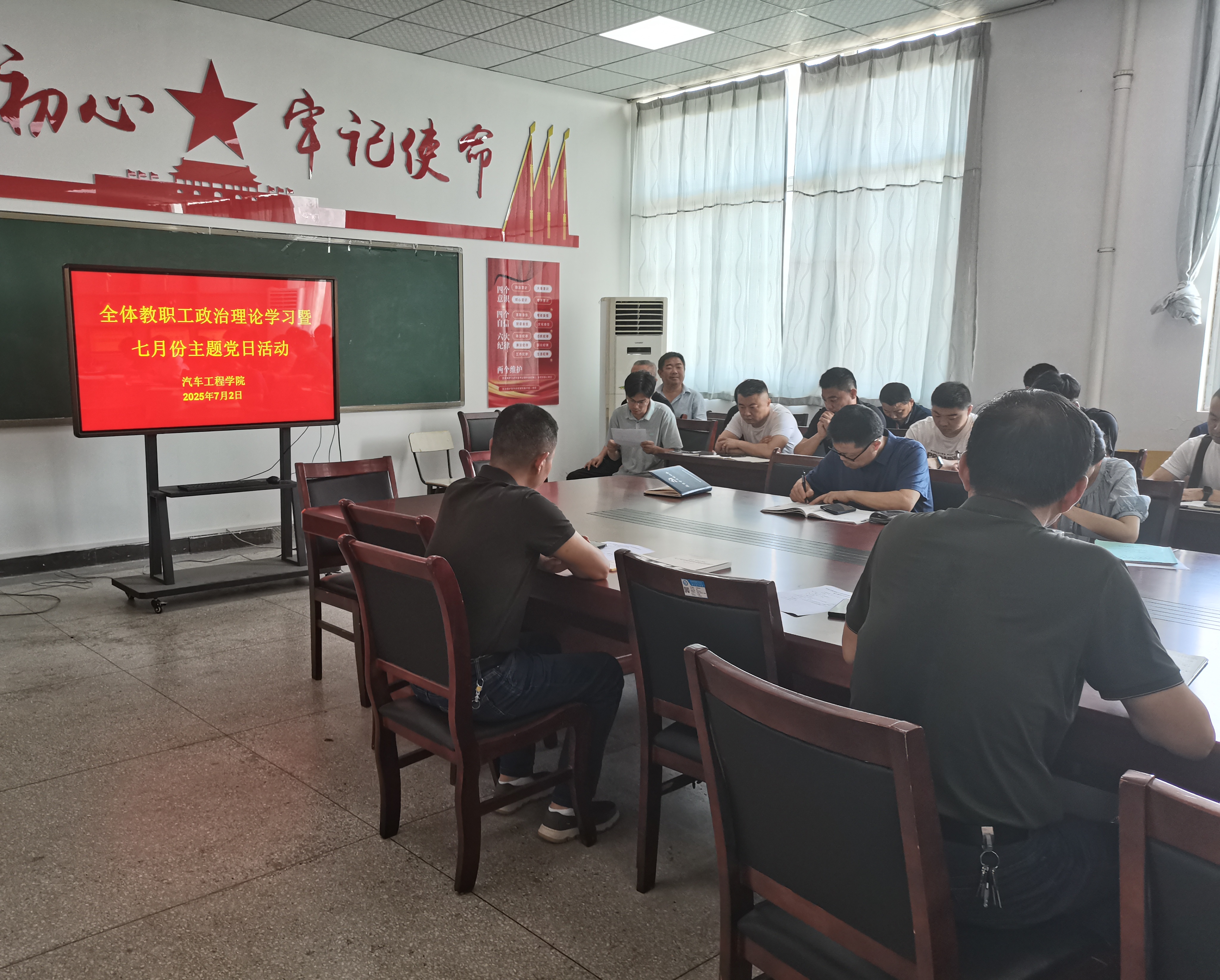 7月2日下午,汽車工程學院在汽車樓405黨員活動室召開了七月份全體教職工政治理論學習暨主題黨日活動。會議由該院黨總支副書記(負責工作)劉靖主持,全體教職工參加。