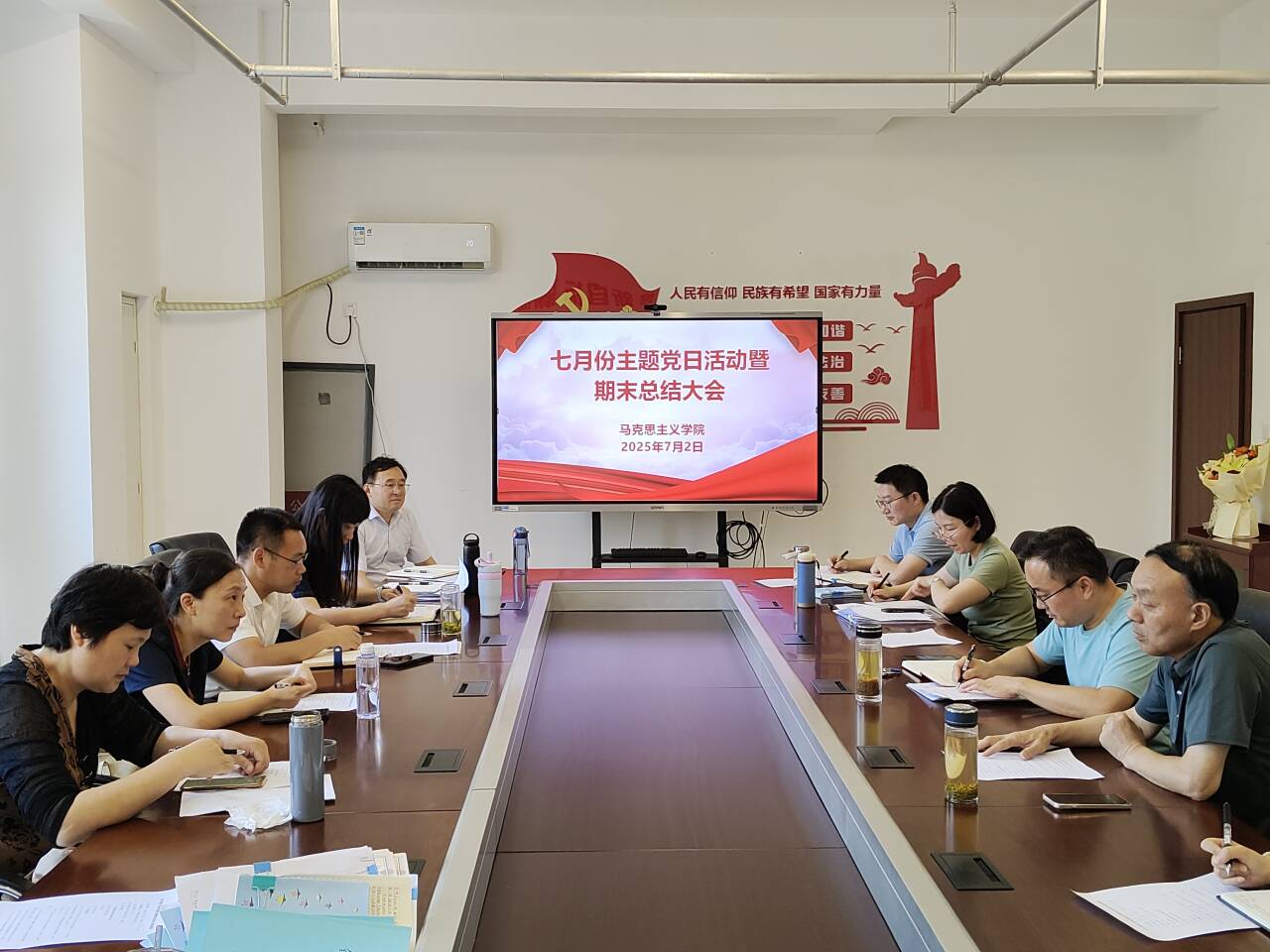 為慶祝中國共產黨成立104周年,深入貫徹中央八項規定精神學習教育走深走實,持續強化作風建設,同時總結好本學期工作,謀劃好暑期和下學期工作任務,凝心聚力高質量推進建設,7月2日下午,馬克思主義學院開展了七月份主題黨日暨期末總結大會。該院黨支部書記王文飛和全體教職工參加了會議,會議由王文飛主持。
