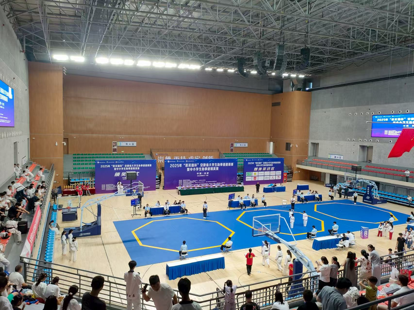 8月13-15日,由安徽省青少年體育聯合會、安徽省學校體育協會聯合主辦的2025年“菜買提杯”安徽省大學生跆拳道邀請賽暨中小學生跆拳道精英賽在我校匯心湖校區體育館成功舉辦。本屆賽事吸引了來自全省近40所高校的300余名大學生選手以及60多支中小學生代表隊的500余名運動員同場競技。學校黨委委員、副校長王海及安徽省青少年體育聯合會秘書長文斌、安徽省學校體育協會副理事長陳友忠、合肥市體育局二級巡視員賈偉、世界跆拳道錦標賽冠軍王瑩等領導和嘉賓出席開幕式。