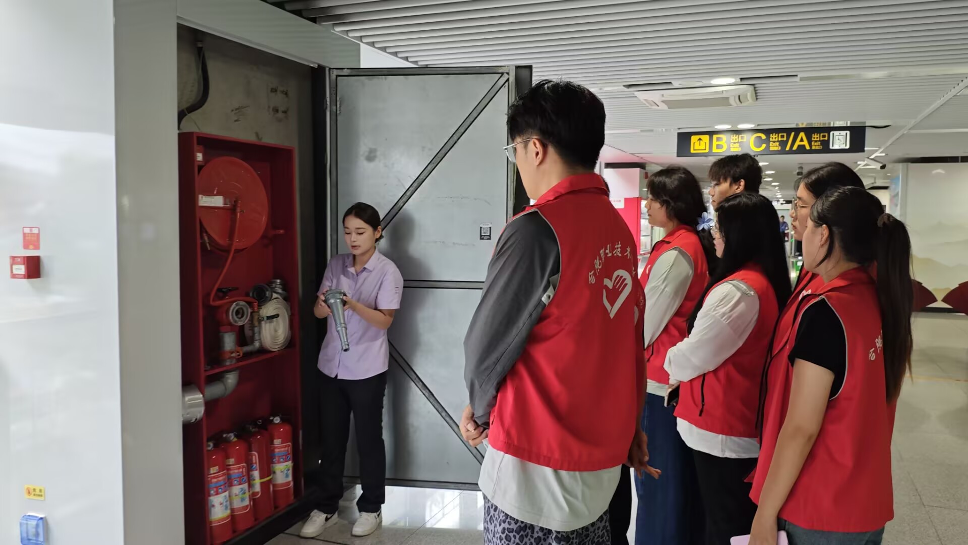 活動中,地鐵運營公司安全管理專員先帶志愿者熟悉站內消火栓、消防服存放點等設施位置,講解地鐵運營常見安全風險,志愿者認真聆聽記錄。隨后,專員演示心肺復蘇流程,展示自動體外除顫器并講解使用方法與注意事項;還教學干粉滅火器、普通滅火器的“提、拔、握、壓”規范操作,指導志愿者掌握消火栓使用方法,兩名志愿者實操表現優異。最后,志愿者積極嘗試消防服穿戴,均準確完成。