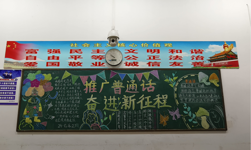 各班級積極響應,精心策劃并制作了以推廣普通話為主題的黑板報。同學們發揮創意,將普通話的重要性、推廣普通話的標語以及相關的文化知識融入精美的板報設計中。有的班級以生動形象的圖片展示了普通話在日常生活中的應用;有的班級則用富有感染力的文字呼吁大家說普通話、寫規范字。
