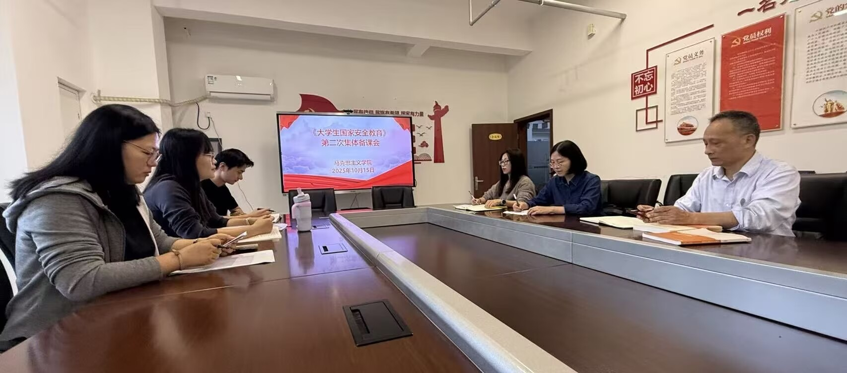 為持續提升《大學生國家安全教育》課程教學質量,深化任課教師對課程內容的理解與把握,馬克思主義學院形勢與政策教研室10月15日下午在該院會議室成功舉行了本學期第二次集體備課會,會議由教研室主任韓路主持,馬克思主義學院院長胡心紅及教研室全體教師參加了本次會議。