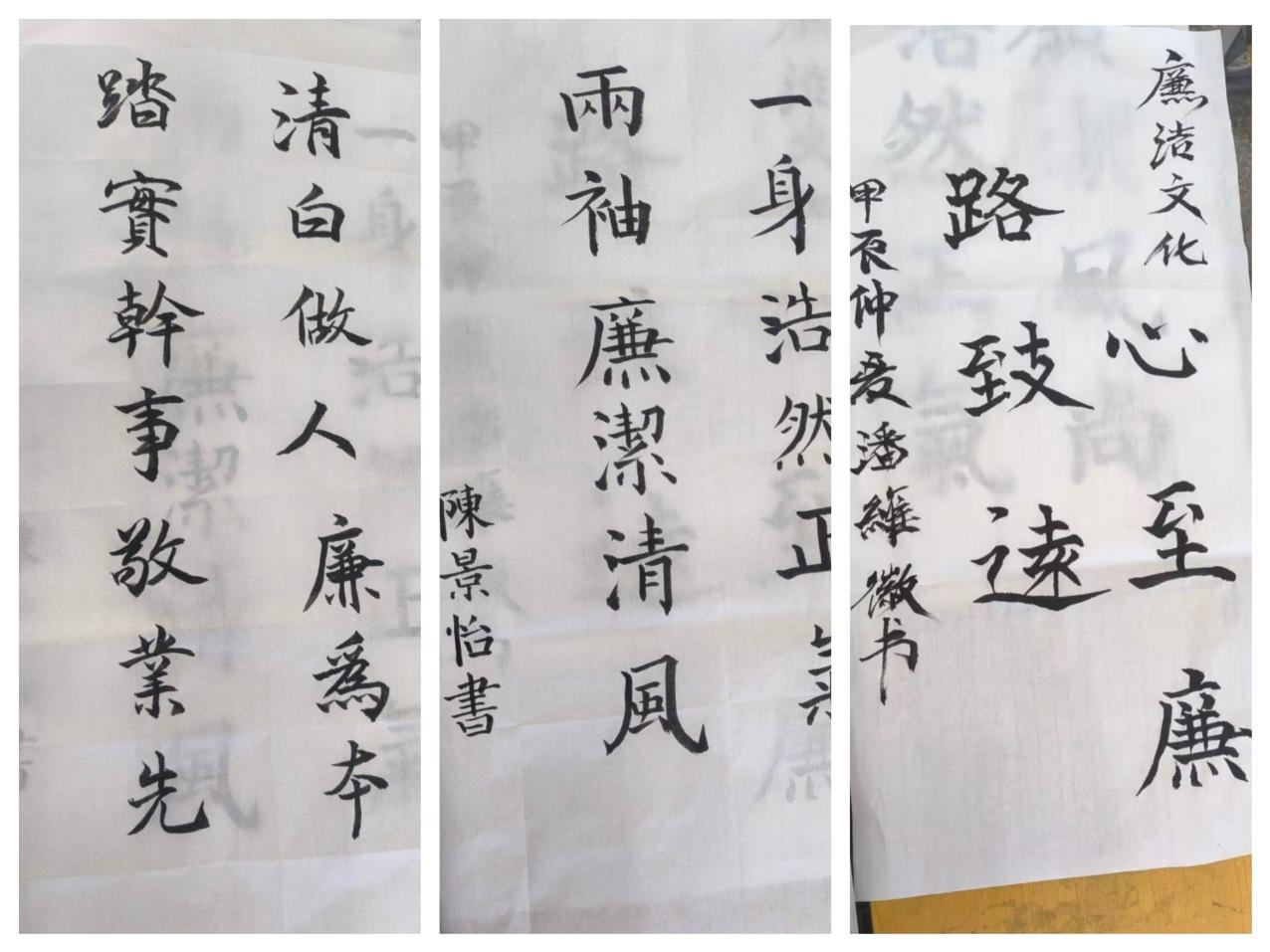 活動現場氣氛熱烈,墨香與歡聲笑語交織在一起,構成了一幅生動的清廉文化畫卷。參與者們紛紛表示,此次活動不僅提升了書法技能,更讓同學們在創作中接受了一次深刻的廉潔教育,把清廉理念融入日常學習與生活。