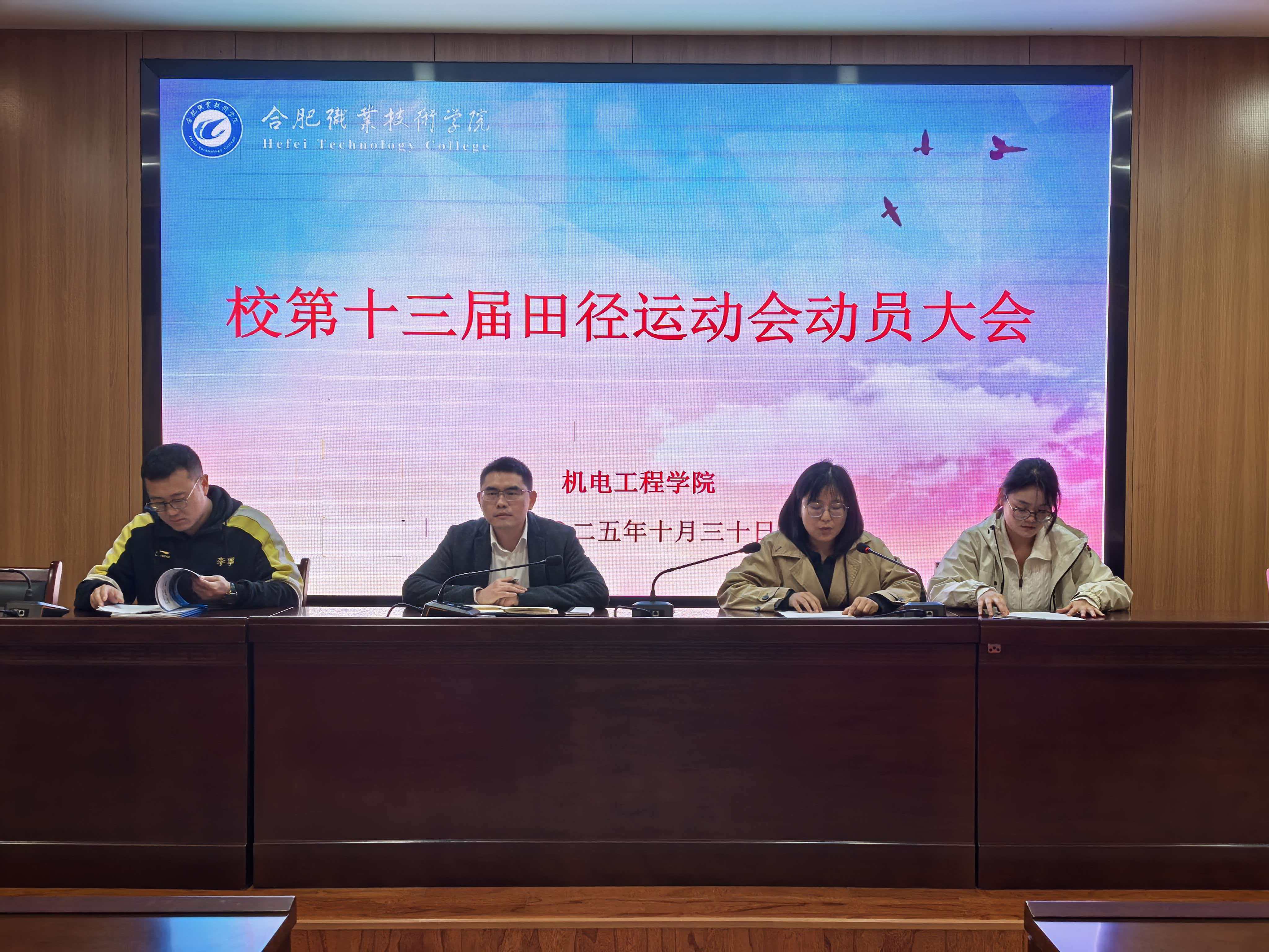 青春與活力共舞,運動與夢想同行。為積極籌備學校第十三屆田徑運動會,充分調動運動員的參賽熱情,確保各項組織工作有序推進,10月30日下午,機電工程學院在匯心湖校區圖書館一樓報告廳舉辦運動會動員大會。本次大會由該院團總支書記張開主持,該院黨總支副書記宋忠春、專職輔導員王玲老師、鄭健老師及全體運動員參會。