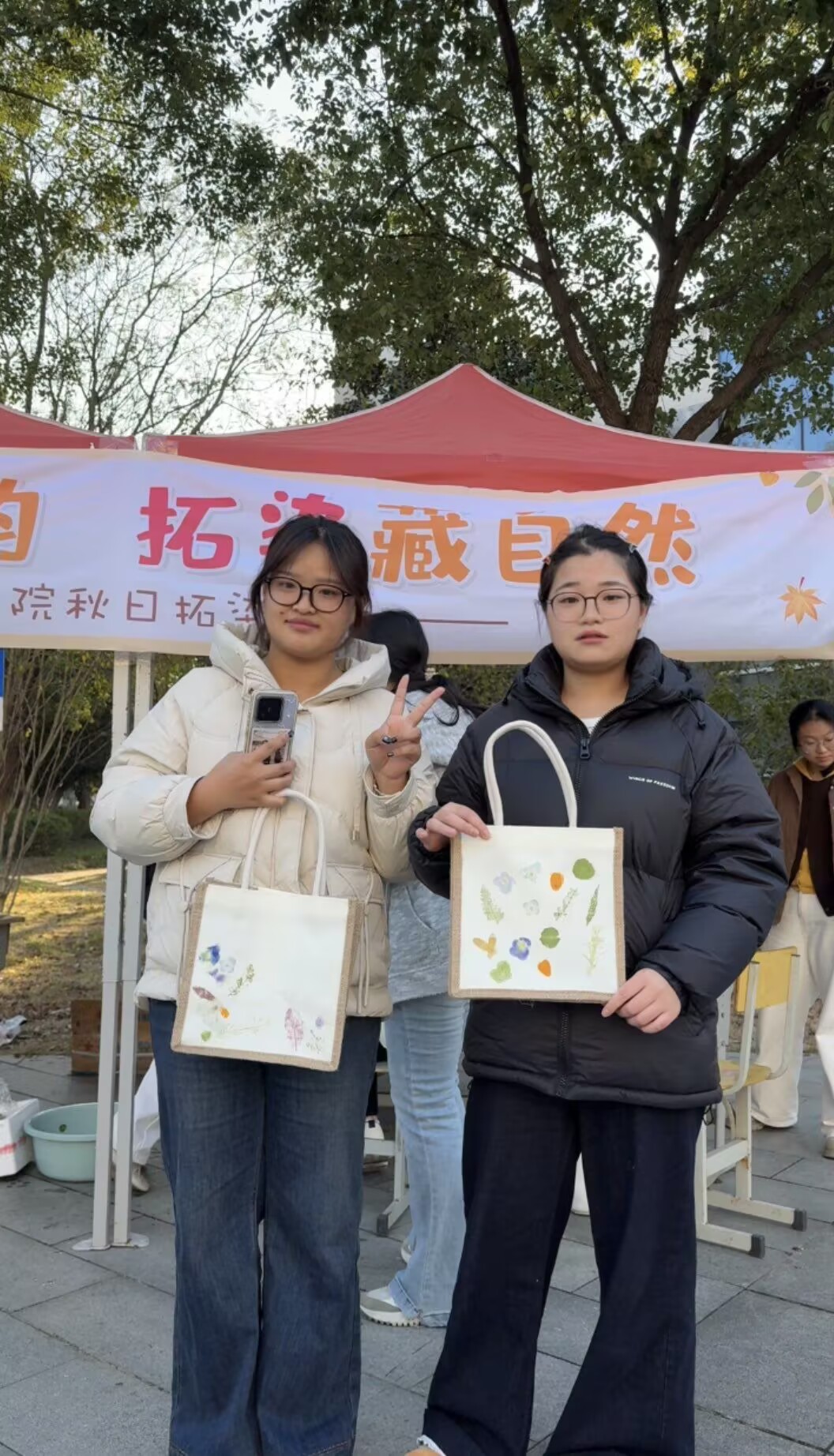 “秋韻送廉”植物拓染,把秋天“敲敲”帶回家。植物拓印是一種古老的藝術(shù)形式,通過物理印染的方式將植物的形狀和顏色印在織物上,拓染后的布料通風(fēng)晾干后,色彩可以保存很久?;顒?dòng)伊始,同學(xué)們先在校園各處采集落葉。將落葉放入明礬溶液中浸泡15分鐘左右以穩(wěn)固色素,取出后再用紙巾吸去表面多余水分,把葉片平整置于帆布袋上,用膠帶固定。接著,用小錘力度均勻地從葉邊向中心輕輕敲擊,使色素慢慢滲透到帆布袋上。隨著敲擊,樹葉輪廓逐漸清晰,天然色素就這樣成功拓印在帆布袋上。同學(xué)們親手制作拓印作品,將校園中的落葉拓染到印有蓮花圖案和《愛蓮說》名句 “出淤泥而不染,濯清漣而不妖”的帆布袋上。此次舉辦的植物拓印活動(dòng),是該院推動(dòng)廉潔文化建設(shè)的一次生動(dòng)實(shí)踐。通過將非遺技藝與廉潔教育相結(jié)合,不僅讓學(xué)生在輕松愉快的氛圍中學(xué)習(xí)到了新的知識(shí)和技能,豐富了他們的校園生活,更在潛移默化中傳播了廉潔理念,弘揚(yáng)了清風(fēng)正氣。
