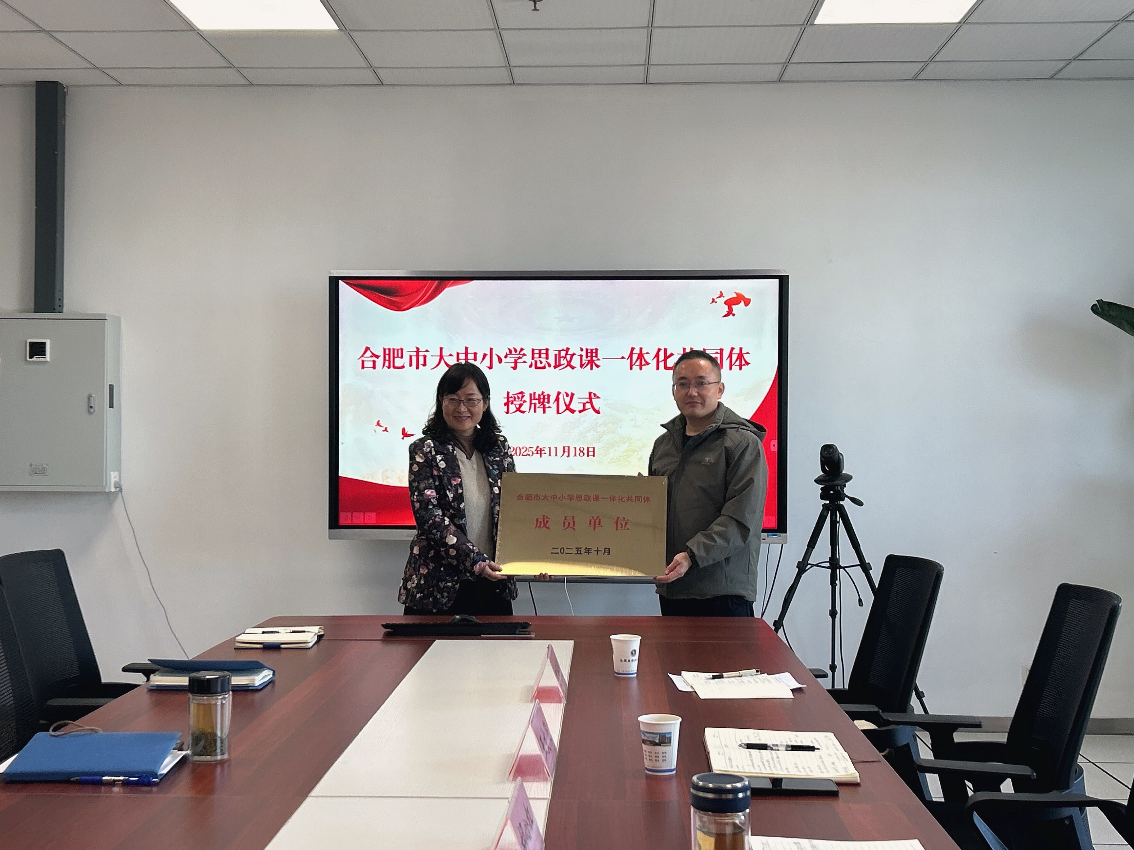 會上,王文飛重點介紹了馬克思主義學院黨建工作和合肥市大中小學思政課一體化共同體建設情況。他指出,共同體旨在打破學段壁壘,匯聚各方智慧,構建循序漸進、螺旋上升的思政育人體系。此次將特教中心納入共同體,是推動思政教育全覆蓋、實現教育公平的重要步驟,標志著共同體建設在領域拓展上取得了新的突破。隨后,王文飛代表合肥市大中小學思政課一體化共同體向合肥特殊教育中心授予了“成員單位”牌匾。