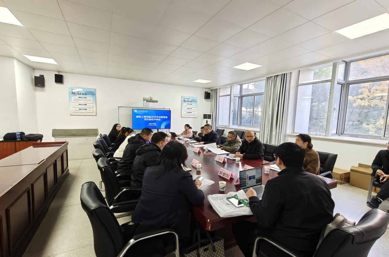 11月20日,建筑工程學院2025年央財資金項目驗收評審會在建工樓213會議室召開。參會評審專家有安徽城市管理職業技術學院教務處處長朱正國、安徽水利水電職業技術學院繼續教育學院副院長張志紅兩位校外專家以及我校總務處、資產處、辦公室、教務處相關負責同志。會議由該院副院長鄧勛主持。