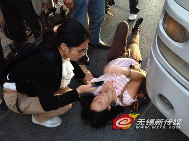 2012年9月27日下午17時30分許,潘娟到市中心參加英語培訓班學習,當步行至中山路學前街路口時,忽然發(fā)現(xiàn)八佰伴南大門門口發(fā)生交通事故,擠了一群人,她正想離開,但聽到人群里有人說“可憐啊,怕是兇多吉少啊”;還有兩位女孩在討論,說不想看到這樣的場面,太慘了。這些話一下揪住了潘娟的心,她連忙擠進圍觀人群,看見一輛大巴車停在路邊,車輪下壓著一輛變形了的自行車。大巴車邊上有個駕駛員,滿頭大汗地在打電話,看樣子是嚇傻了。旁邊圍觀的群眾議論紛紛,卻沒有人撥打急救電話或施以援手。旁邊有人介紹說“騎自行車的還在車底下壓著呢”。聽到車底下傳出的斷斷續(xù)續(xù)的呻吟聲,潘娟急忙撥打110、120電話,請求幫助。同時迅速主動趴在地上,與事故的傷者進行言語溝通。受傷的女子倒在車底,情況不明。潘娟跪在大巴車邊上,彎下腰,抓住受傷的中年女子,一點一點地將對方挪移到車外,靠向自己,迅速為受傷女子檢查傷勢。這時她才看清:中年女子左手肘關(guān)節(jié)內(nèi)側(cè)有一個傷口,一段白森森的斷骨刺穿了肌肉,鮮血直涌。潘娟借助自己的專業(yè)知識,判斷為開放性骨折!作為護士,她想到的是立即止血,便用兩只手緊緊環(huán)箍住傷者左上臂,可鮮血還是大量往外冒。中年女子痛得大汗淋漓,口唇和臉色一樣蒼白。大量的失血和劇烈的痛楚讓她幾乎昏迷。這是典型的失血休克前兆?!按蠼?!我是學護理的。我來幫你!你堅持住,救護車馬上就來!”潘娟安慰傷者,穩(wěn)定她的情緒并用手緊緊握住傷者的左手上臂,希望通過壓迫止血法為該女子止血。但是幾分鐘后,鮮血仍舊無法止住。潘娟立刻準備采用捆扎動脈的辦法止血,可一時找不到繩子。她環(huán)顧四周,看到大客車司機系在腰間的皮帶,趕緊讓司機把皮帶解下來救人。司機摘下皮帶遞過來,因為皮帶太硬。她用起來效果不明顯,仍沒有止住血。很快,潘娟反應(yīng)過來:自己不系有腰帶么?腰帶又軟又細。于是,她一手繼續(xù)壓著傷者的手臂,另一只手去解自己的腰帶,用這條腰帶緊緊系住傷者的腋下手臂。兩分鐘過去了,血慢慢止住了??粗鴤哐巯聸]有生命危險,潘娟松了口氣,擦擦頭上的汗。當時正是晚高峰時間,救護車還是沒有出現(xiàn)。細心的潘娟從肇事司機那里取來了一塊干凈的毛巾,輕輕蓋在傷者的斷骨處,以免灰塵和臟污落入傷口,影響后續(xù)治療。隨后,“120”急救車終于擠出了路上的車流,趕到了現(xiàn)場。潘娟急忙把中年女子抬上救護車,并不忘提醒急救醫(yī)生:腰帶扎住傷者的手臂已有六七分鐘了,要防止因捆扎時間過長造成肢體壞死。