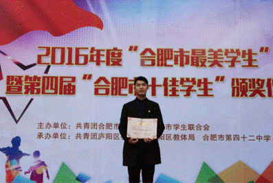 張維一,信息與電商傳媒學院軟件技術(shù)專業(yè)的一名學生,校學生會主席,同時也是學院環(huán)保協(xié)會會長。2016年榮獲合肥市“最美大學生”稱號,2015-2016年在合肥市共青團工作中榮獲“優(yōu)秀團干部”稱號,2017年獲第十一屆“安徽省青年志愿者優(yōu)秀個人”稱號。一直以來,他崇尚志愿者那種無私奉獻、不求回報的精神,而他真正的志愿服務(wù)之路是從進入合肥職業(yè)技術(shù)學院加入學生會開始的,在這里,做自己力所能及的事,幫助身邊需要幫助的人。