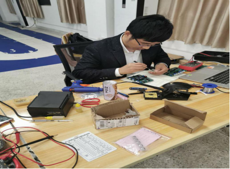 彭老師不僅僅“教書匠”,更是一個教育學生自己動手實踐的“工匠師”。在比賽前期,車模還沒有到位,彭老師便要求學生們自己動手,自主學習。很多學生第一次接觸焊接電路板,無從下手,彭老師便通宵教大家焊接工作,拿著電烙鐵拿著電路板,一遍又一遍不厭其煩地演示。盡管是熬了一個通宵,彭老師也沒有忘記他的本職工作,第二天一早又投身于日常教學工作當中。讓學生們感受到他作為教師的嚴謹以及作為朋友的溫暖,備賽團隊一起看每一個備戰凌晨的合職,一起為每一次任務的完成而歡呼!