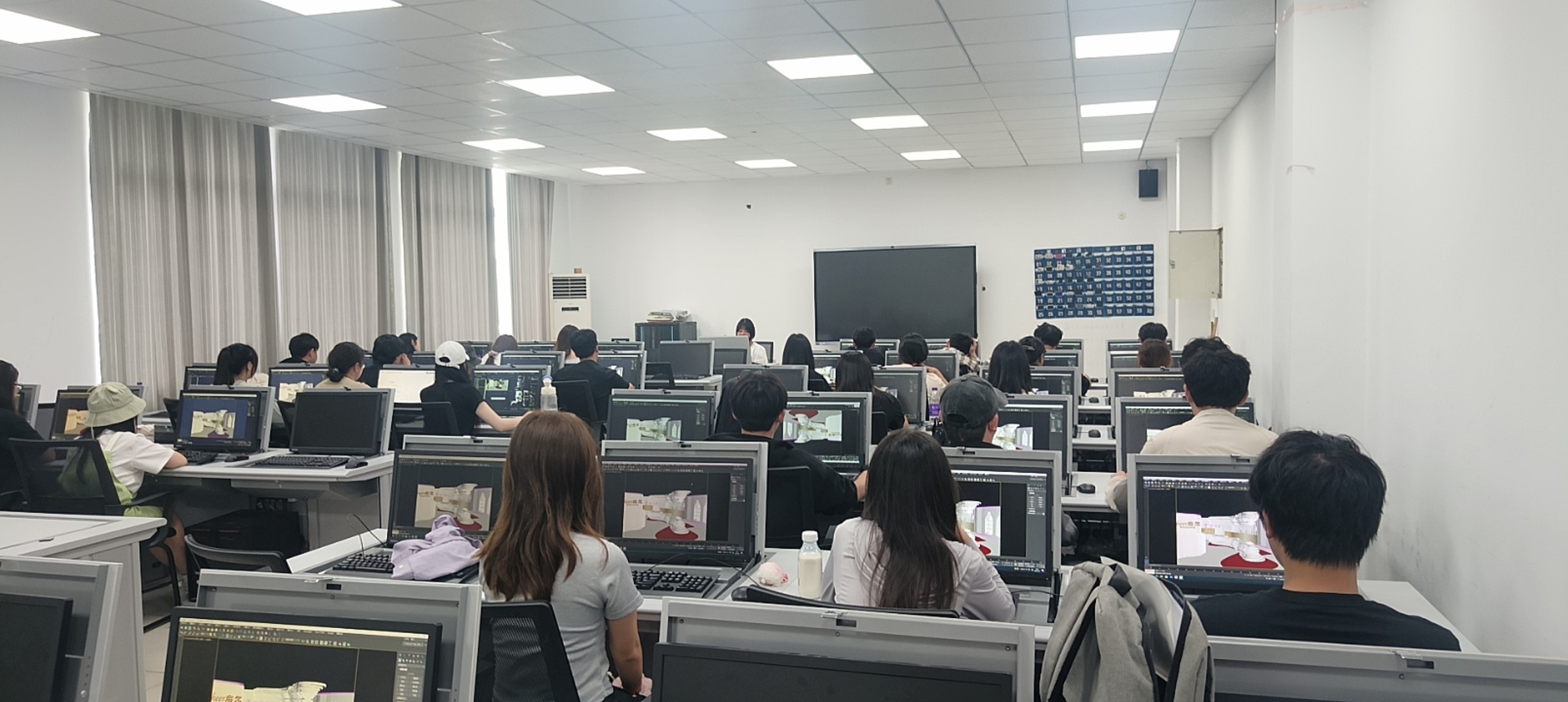 開放實驗實訓室活動。5月24日,建筑裝飾教研室朱麗娟老師以“紅酒專賣店展示空間設計”為主題開展實訓機房教學示范課。朱麗娟老師在實訓機房中,結合紅酒空間的流線設計造型,運用 CAD繪制地面傾瀉的紅酒造型,流線型酒具臺,重點運用3DMAX中繪制流線地面造型和曲線展臺,同時在3DMAX軟件中給出Vray材質,設置室外天光,室內筒燈,展示文化墻暗藏燈等,最終進行紅酒專賣店展示空間的大圖渲染,充分提高了學生的軟件實操能力,為以后室內設計實習及工作就業打下堅實基礎,提高了實際運用能力。
