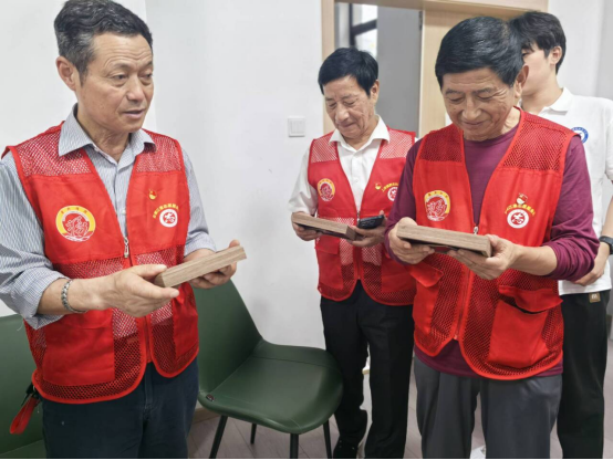 在社區(qū)舞蹈室,王玉明爺爺?shù)暮J絲《映山紅》與陸應(yīng)柏爺爺?shù)亩赌夏酁场方豢椈仨憽A钊梭@嘆的是,這些技藝全是老黨員們自學(xué)而成。“活到老學(xué)到老,黨員更要帶頭進(jìn)步!”王爺爺?shù)脑挵殡S琴聲浸潤心田。當(dāng)實(shí)踐團(tuán)隊(duì)的志愿者送上在紅色主題展板前拍攝的裝裱合影時,三位老人撫摸著相框笑靨如花:“看到你們,就看見祖國的未來!”