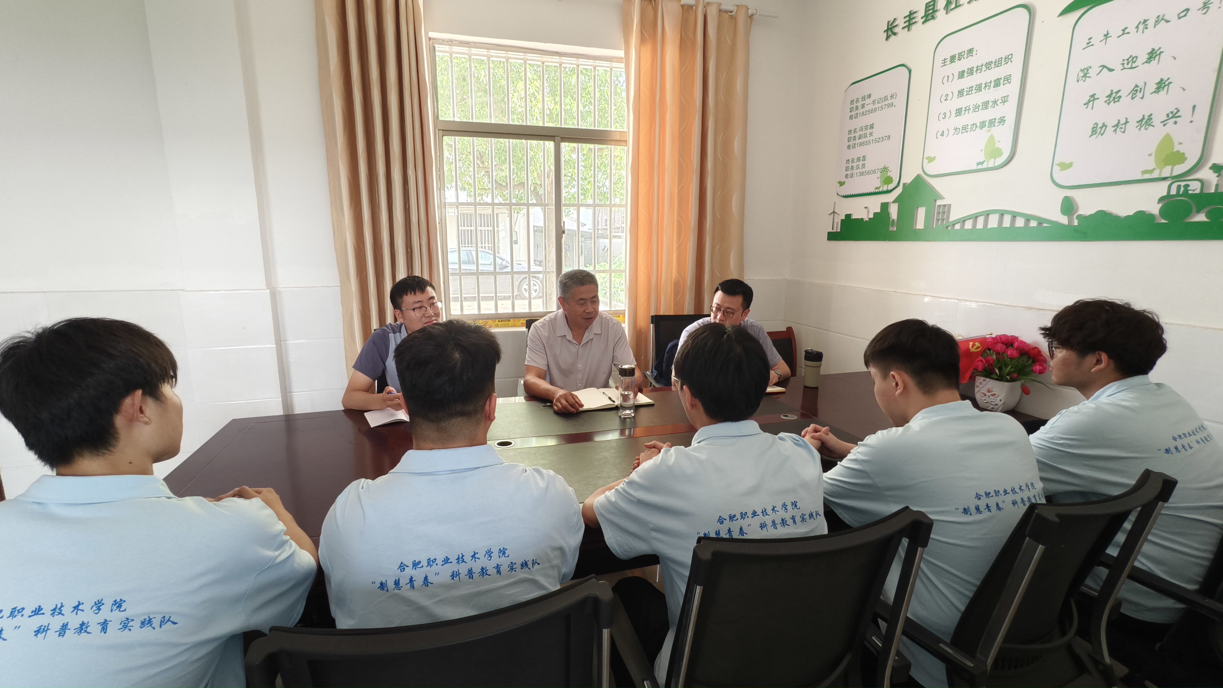 安全宣講過后,實踐隊還同迎新村村委會舉行座談,雙方圍繞當地產業發展、留守兒童科普教育、黨支部共建活動等議題深入交流,探討如何更精準地發揮高校智力資源服務鄉村發展。