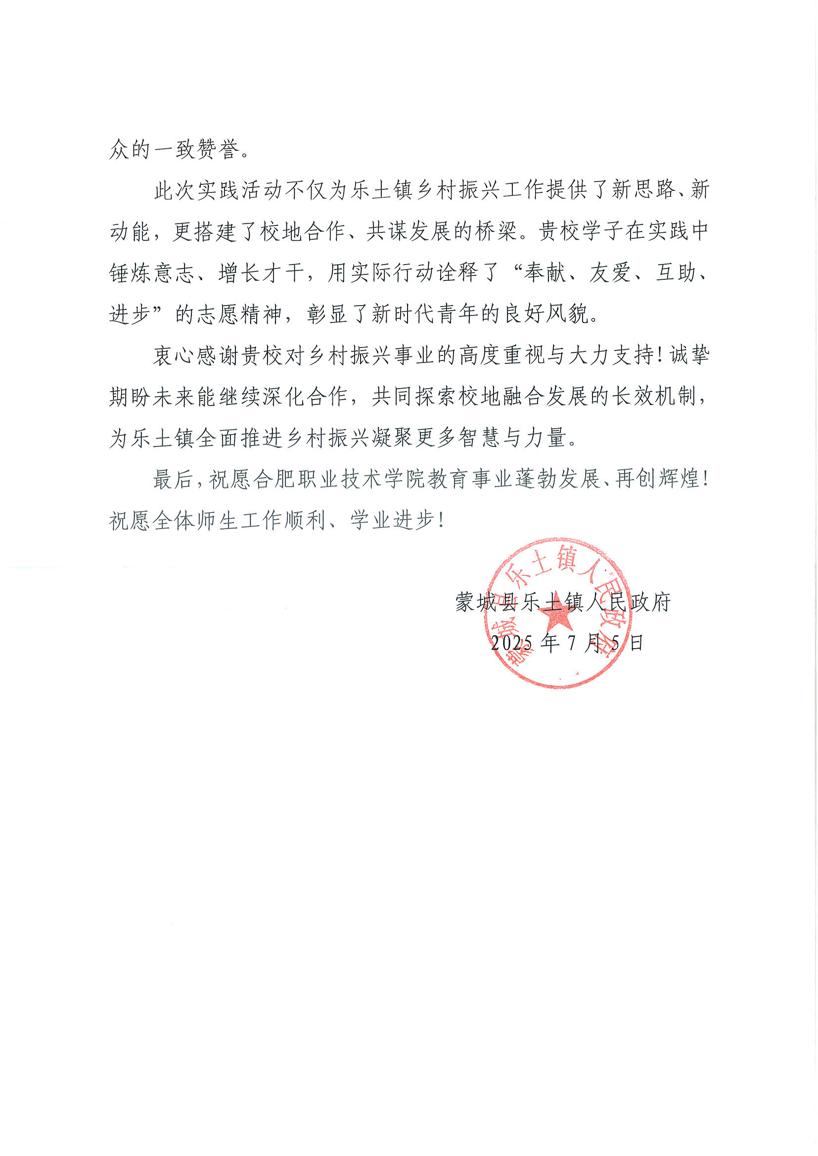 未來(lái),合職院“砼心共筑”鄉(xiāng)村振興實(shí)踐團(tuán)將持續(xù)關(guān)注樂(lè)土鎮(zhèn)發(fā)展,深化調(diào)研成果應(yīng)用,并探索拓展和美鄉(xiāng)村的內(nèi)涵建設(shè)和日常管護(hù)、村集體經(jīng)濟(jì)發(fā)展、房屋防災(zāi)減災(zāi)風(fēng)險(xiǎn)防控等更多元化的服務(wù)內(nèi)容,建立長(zhǎng)效服務(wù)機(jī)制,努力為繪就鄉(xiāng)村振興的壯美畫(huà)卷貢獻(xiàn)持久青春力量。(供稿:建筑工程學(xué)院 金瓊瓊 初審:丁怡琴 審核:楊璨)