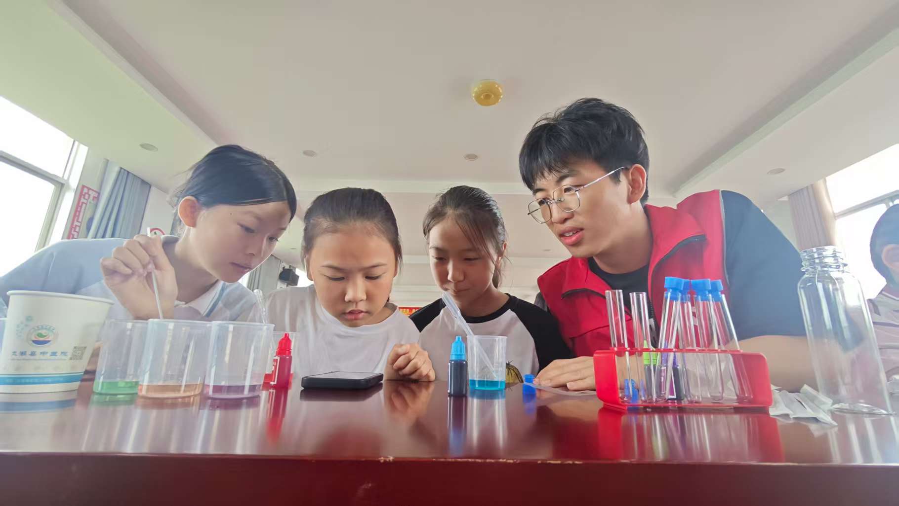 6月29日,實踐團(tuán)以物理與化學(xué)小實驗開啟奇妙的科學(xué)啟蒙。“發(fā)光的電燈泡”讓孩子們驚嘆于電流魔力;“回家的滾輪”以重力勢能與動能的轉(zhuǎn)化揭示自然法則;“懸浮筆”的磁力奧秘將氣氛推向高潮。而在“魔法氣球”實驗中,檸檬酸與小蘇打的神奇融合,瞬間釋放出的澎湃氣體,更是讓孩子們見證氣球“自力更生”鼓脹變大的奇跡。實踐團(tuán)志愿者們紛紛化身“小老師”,讓抽象原理在孩子們的親手觸摸間變得鮮活生動,讓科學(xué)的種子悄然播撒孩子們的心田。
