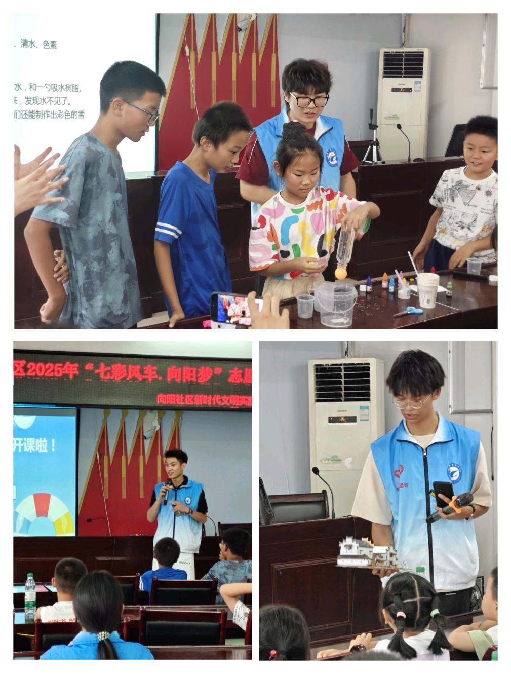 向陽社區團委書記辛芳芳全程參與活動,對實踐團的表現給予高度評價:“這些大學生老師備課扎實、授課耐心,把專業知識轉化成孩子們能聽懂的語言,每天課后都有家長來打聽第二天的課程安排。他們不僅解決了雙職工家庭的看護難題,更用青春活力感染著孩子們,這種‘接地氣’的實踐活動值得點贊。”社區居民李女士也笑著說:“我家孩子每天回家都念叨扎染有多好玩,還教我們做大氣壓實驗,太有意思了。”