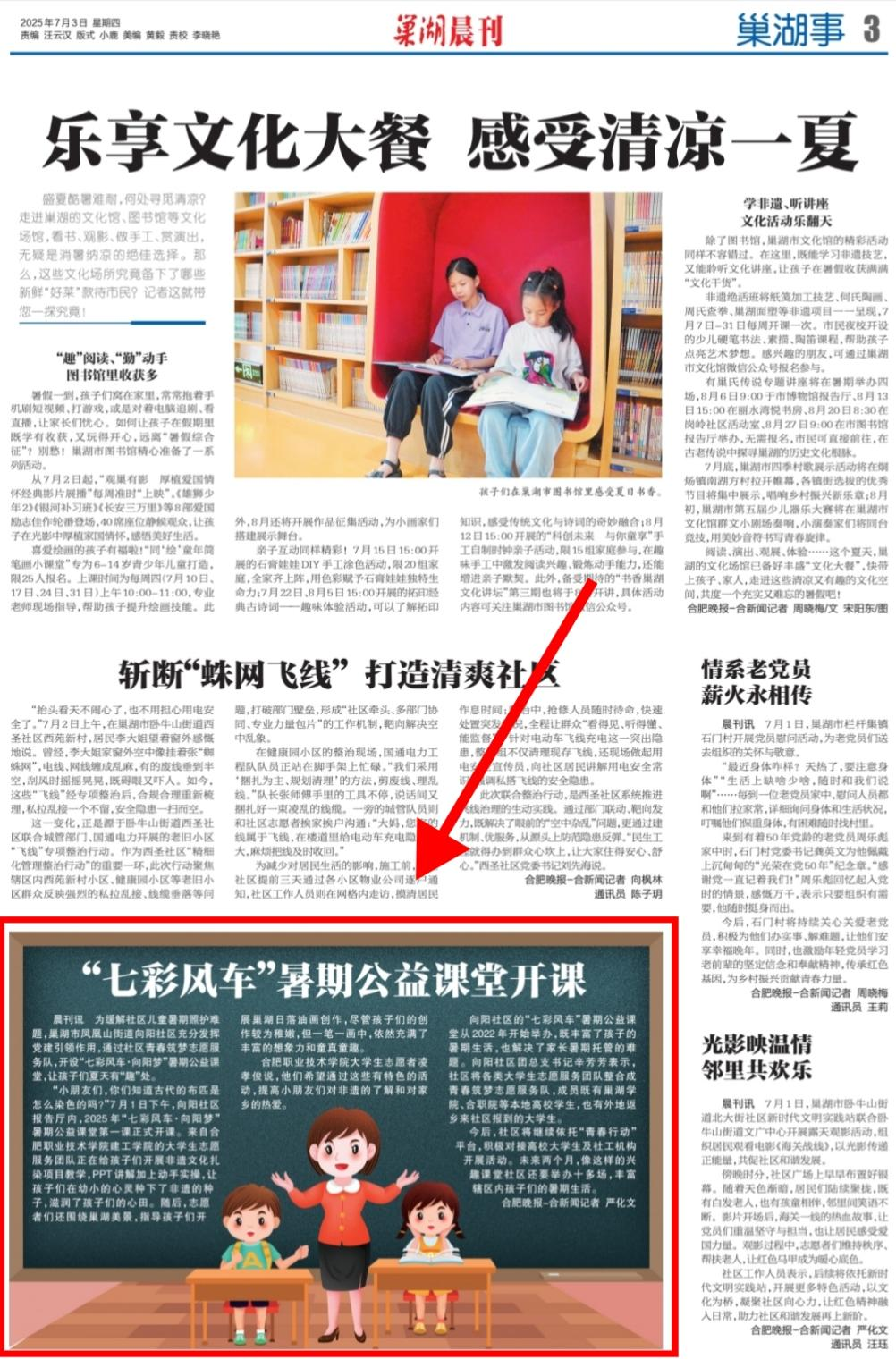 6月30日-7月6日,我校建筑工程學院“微光成炬 一路向陽”實踐團走進巢湖市鳳凰山街道向陽社區,開展為期一周的“七彩風車?向陽夢”暑期公益課堂活動。7名實踐團成員帶著精心設計的課程方案,為社區兒童帶來了一段充實而有趣的學習時光。