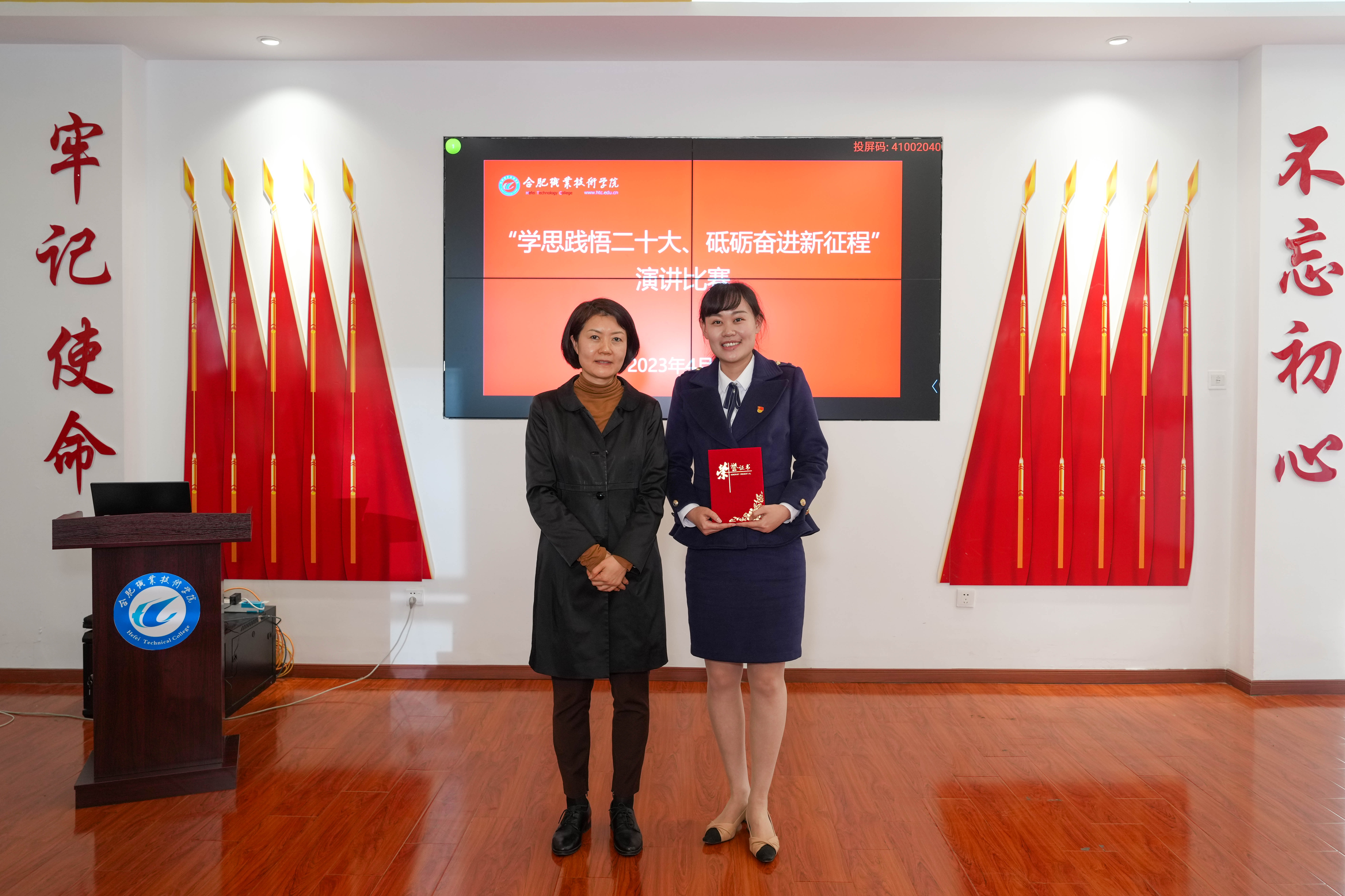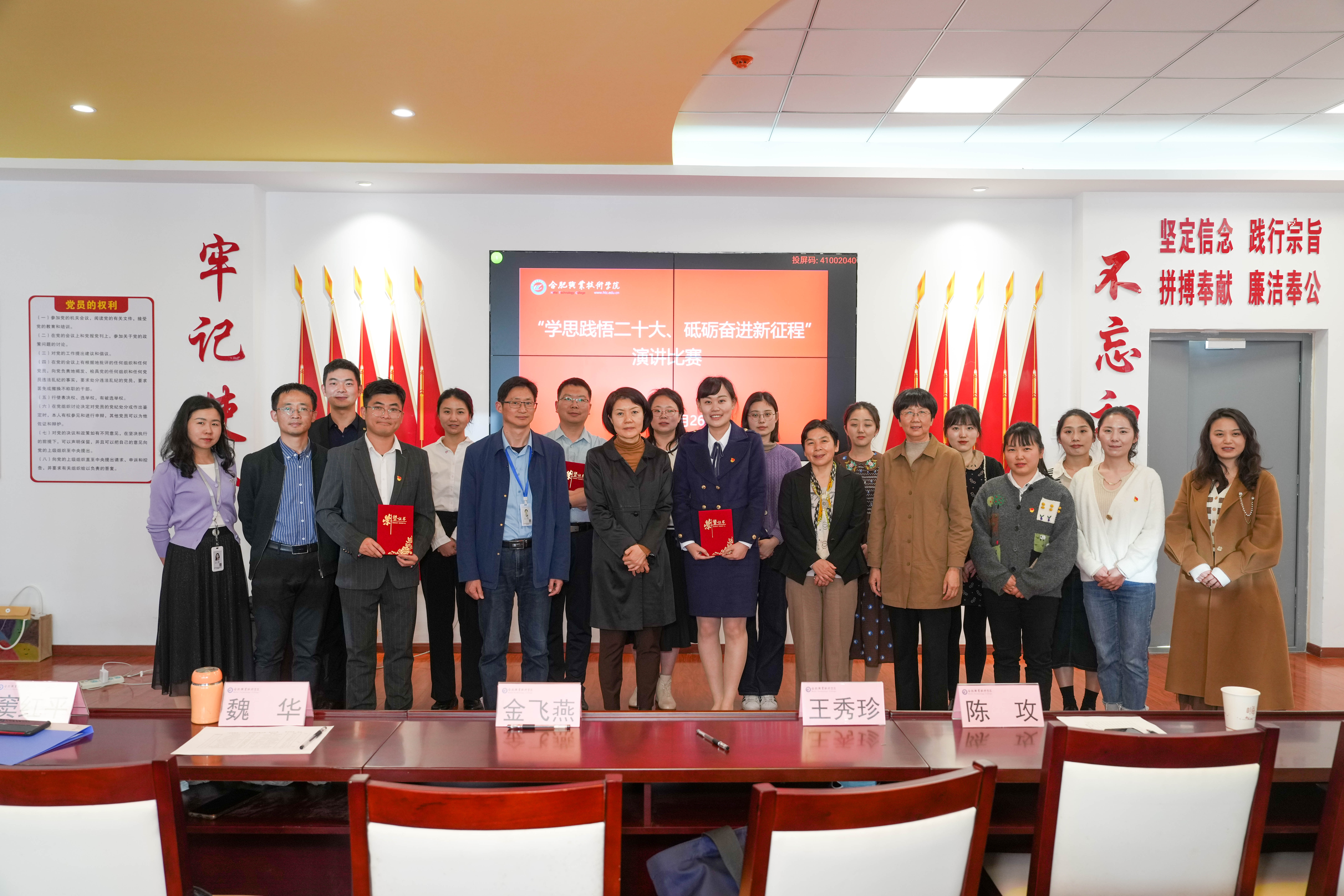為進(jìn)一步深入學(xué)習(xí)宣傳貫徹黨的二十大精神,引導(dǎo)我校教師強(qiáng)化學(xué)思踐悟,牢記使命擔(dān)當(dāng),展現(xiàn)我校教師愛(ài)黨愛(ài)國(guó)、自信自強(qiáng)、昂揚(yáng)進(jìn)取的精神風(fēng)貌,4月26日下午,由我校組織人事部、宣傳統(tǒng)戰(zhàn)部共同組織的“學(xué)思踐悟二十大 砥礪奮進(jìn)新征程”主題演講比賽在經(jīng)貿(mào)樓黨性體驗(yàn)館舉辦。校黨委副書記金飛燕,校黨委委員、宣傳統(tǒng)戰(zhàn)部長(zhǎng)魏華,校工會(huì)主席王秀珍,教務(wù)處處長(zhǎng)竇紅平,組織人事部副部長(zhǎng)陳攻來(lái)到現(xiàn)場(chǎng)擔(dān)任評(píng)委并為獲獎(jiǎng)選手頒獎(jiǎng)。來(lái)自直屬分黨委、各二級(jí)學(xué)院黨總支、馬克思主義學(xué)院(籌)黨支部推薦的共12名老師參加了本次比賽。