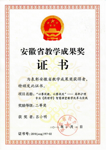 呂小明作為醫學院教管辦主任,工作勤懇踏實,醫學院作為全校學生數最多的二級學院,歷年來教學管理工作井井有條,對教師要求嚴格,學風考風優良。2017年呂小明作為主撰寫人申報國家控制專業臨床醫學專業,同時作為設立合肥市八院成為我校附屬醫院工作的主要對接人,經過一年艱苦的材料撰寫、層層審批,光申報材料就修改了30多次,終于在2017年8月成功設立合肥市八院為我校附屬醫院,并且2018年1月成功通過國家教育部批準同意設置臨床醫學專業,醫學院成為全校第一個設置國家控制專業的二級學院。