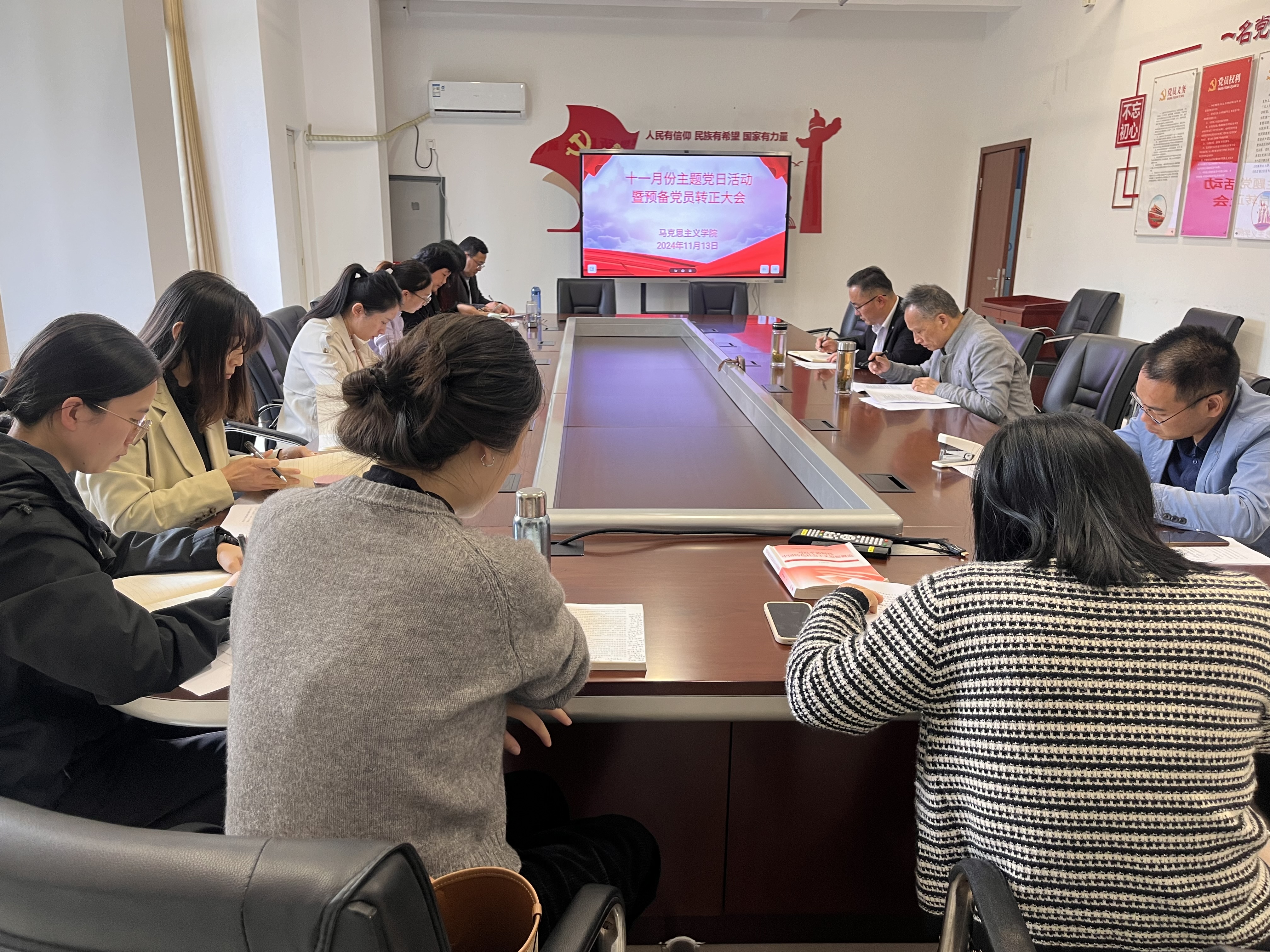 為深入學(xué)習(xí)貫徹黨的二十屆三中全會(huì)精神,不斷加強(qiáng)師德師風(fēng)建設(shè),筑牢師德師風(fēng)防線(xiàn),規(guī)范教師從教言行,11月13日下午,馬克思主義學(xué)院開(kāi)展了十一月份主題黨日活動(dòng)暨預(yù)備黨員轉(zhuǎn)正大會(huì)。該院黨支部書(shū)記王文飛、院長(zhǎng)胡心紅和全體教職工參加了會(huì)議,會(huì)議由王文飛主持。